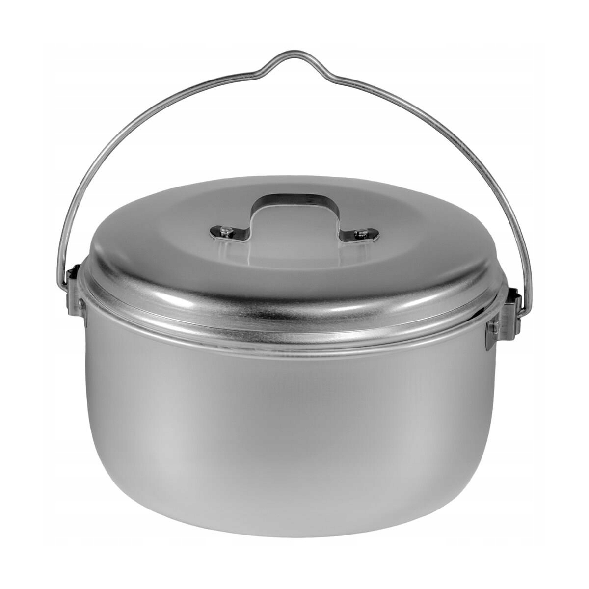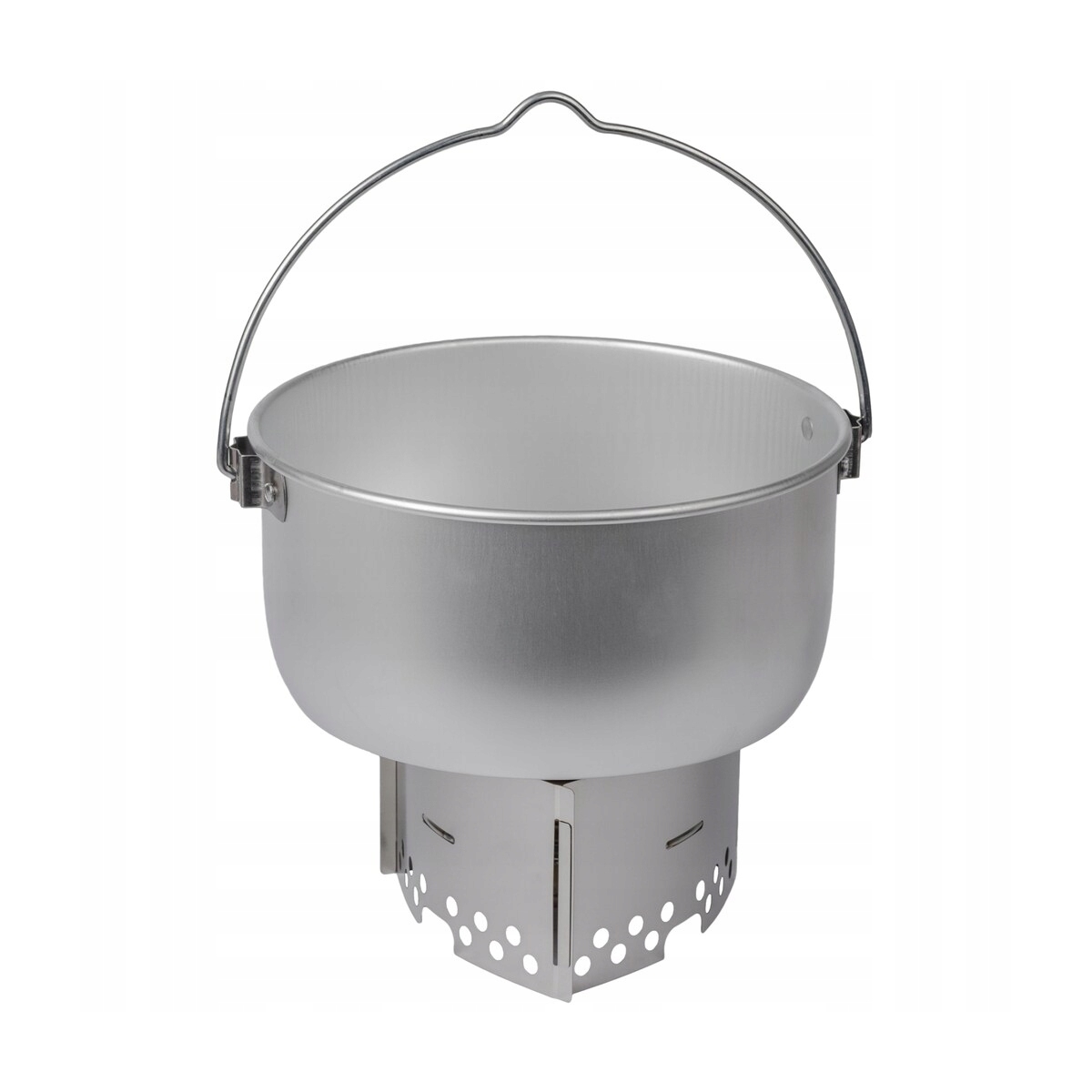Głęboka pokrywa kociołka posiada wygodny uchwyt, pozwalający na jej zdjęcie w czasie gotowania (konieczne rękawice). Płaskie dno garnka pozwala na bezpieczne i stabilne ustawienie go na kuchence turystycznej.
