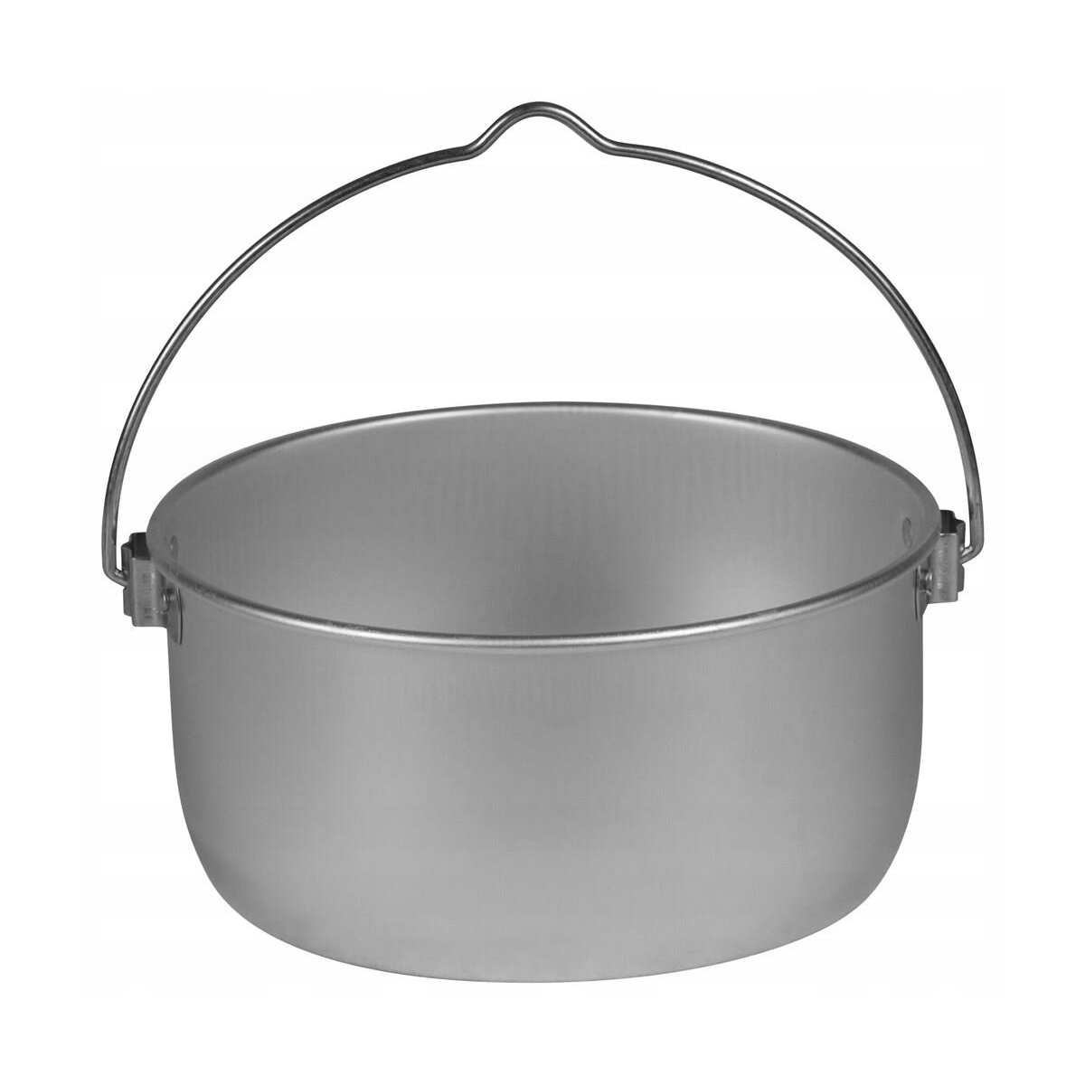 Wykonany jest z aluminium UL (Ultralight), które jest dopuszczone do kontaktu z żywnością. Składany uchwyt umożliwia jego wygodną obsługę, zawieszenie nad ogniskiem na polowej kuchni lub trójnogu oraz pozwala na łatwe spakowanie do bagażu.