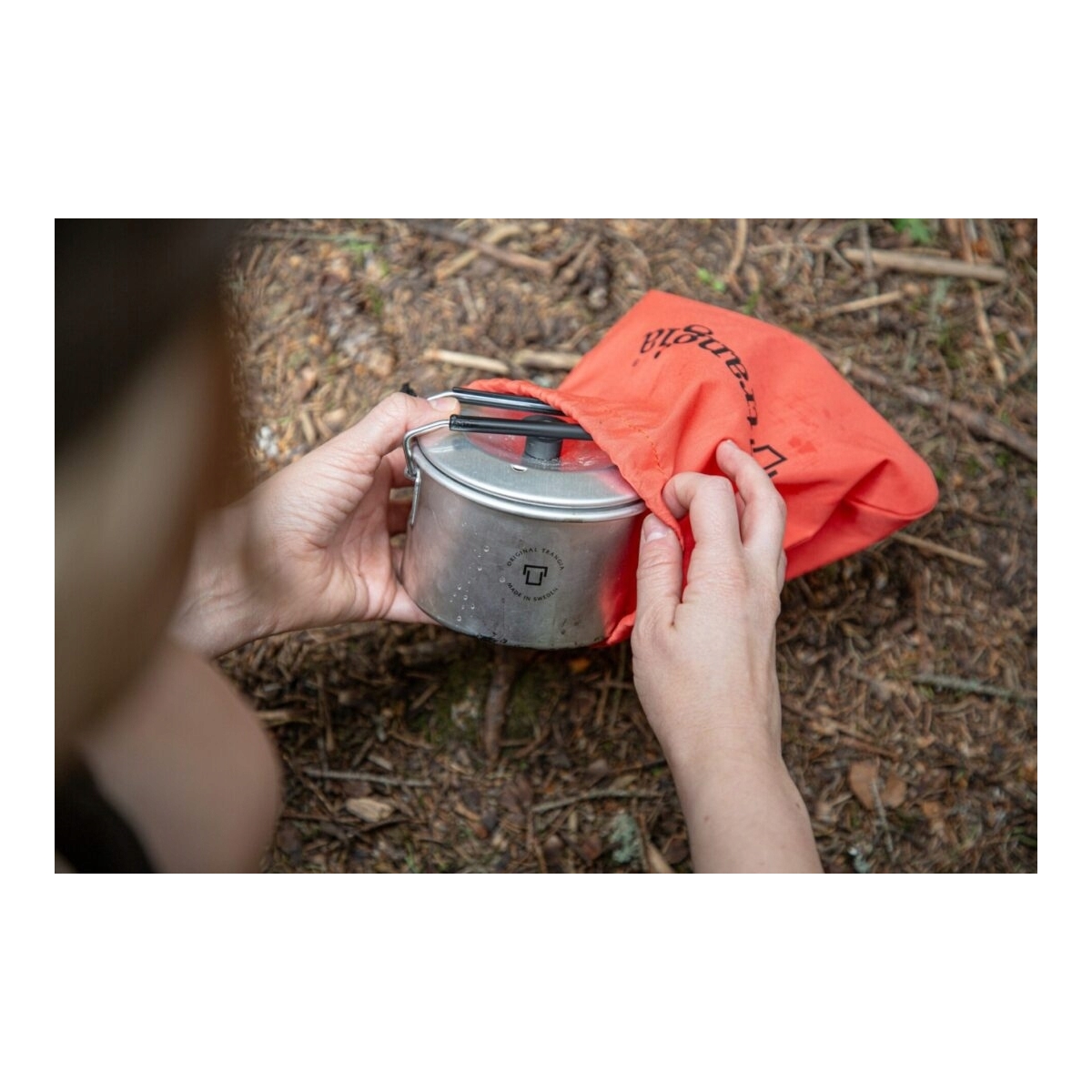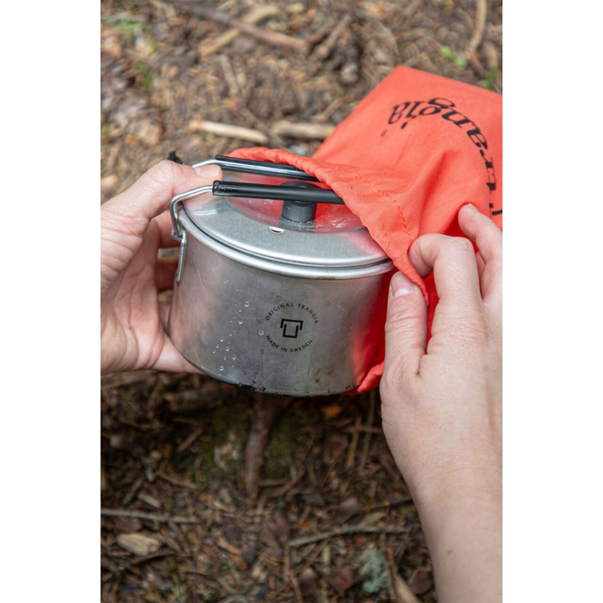 - Idealna Stabilność: Dno kubka jest optymalnie wyprofilowane, dzięki czemu jest wyjątkowo stabilny w połączeniu z małymi kuchenkami Trangia, takimi jak modele Mini lub Triangle.