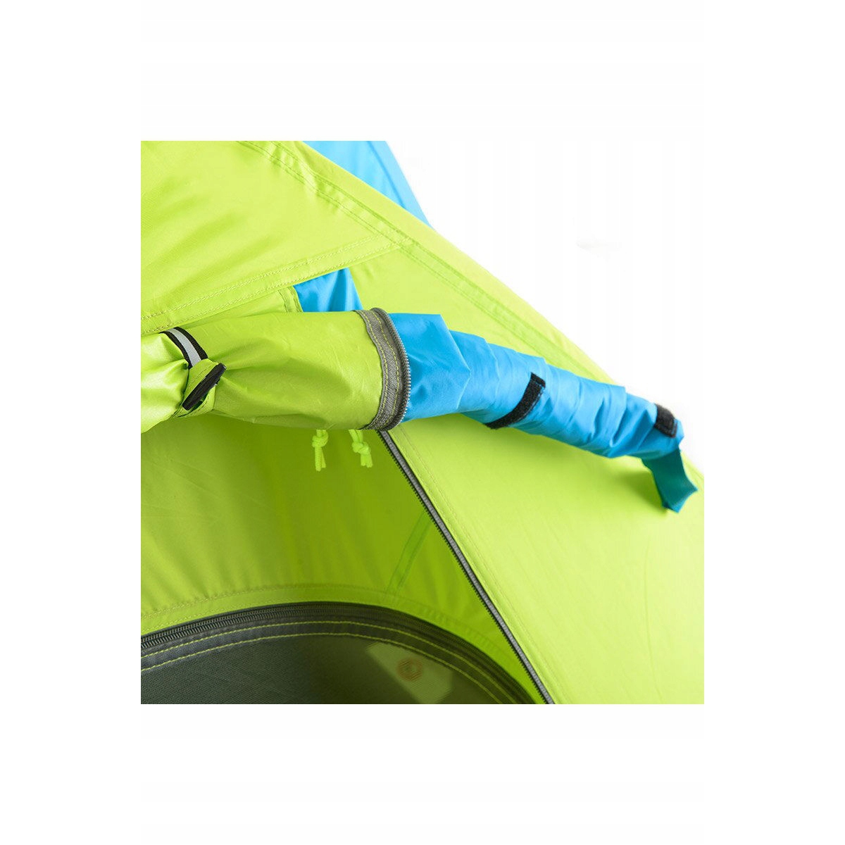 - Sypialnia z siateczkowymi ścianami zapewnia stałą cyrkulację powietrza i ochronę przed owadami, dodatkowo istnieje możliwość zamiany jednego wejścia w daszek chroniący przed słońcem.