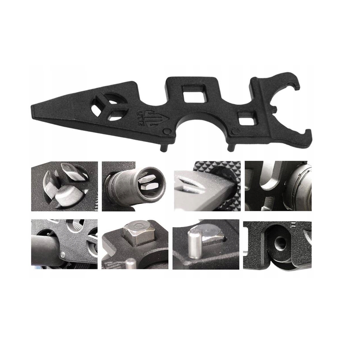 LEAPERS AR15 - to wielofunkcyjne narzędzie przeznaczone do karabinka AR15. Klucz został wykonany w całości ze stali, pokrytej powłoką odporną na ścieranie oraz chroniącą przed korozją. Niewielkie narzędzie ułatwia przeprowadzenie większości prac związanych z demontażem i wymianą głównych podzespołów broni np. odkręceniem kolby, wymianą lufy i urządzenia wylotowego oraz wiele innych.