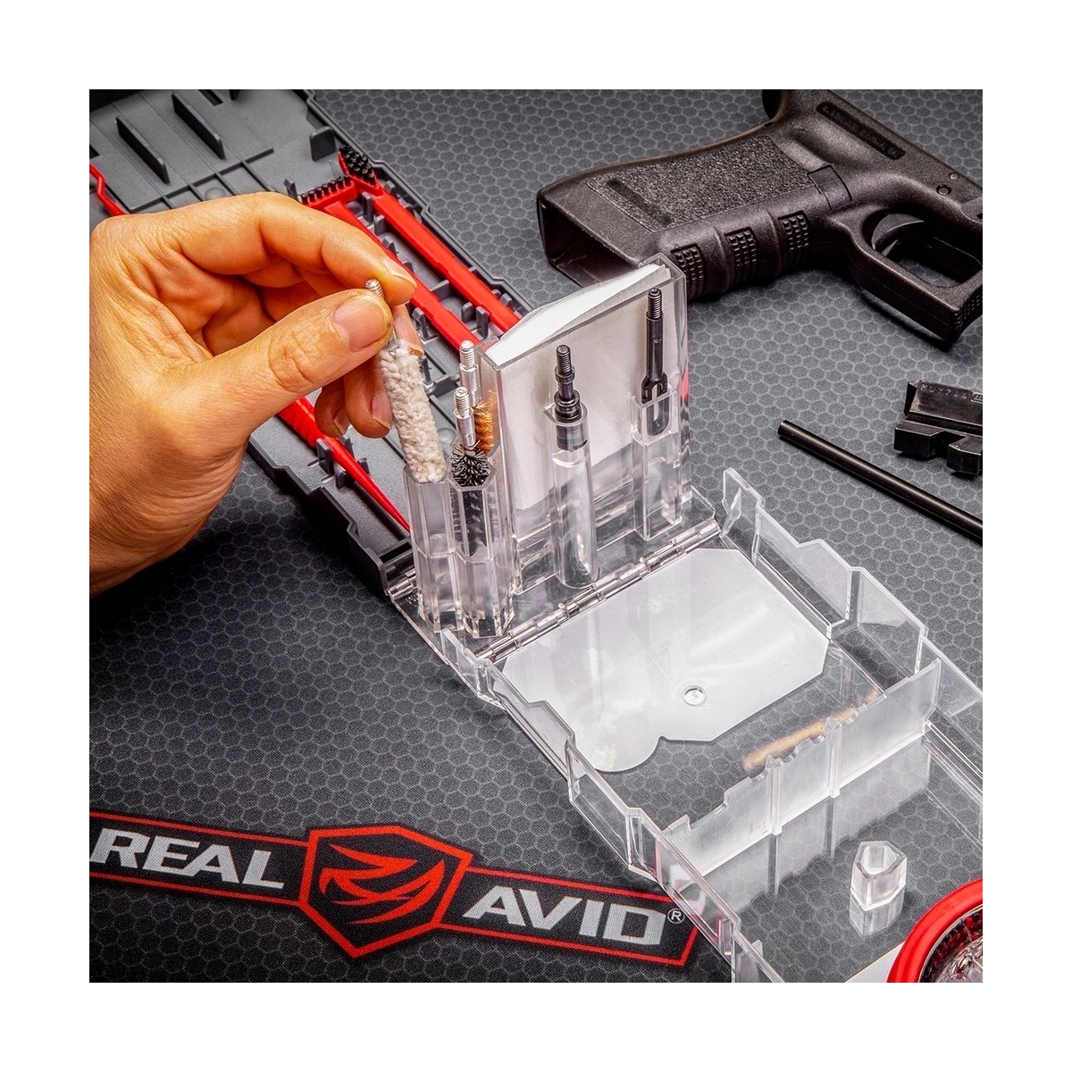 Zestaw Gun Boss Multi-Kit amerykańskiej marki Real Avid to profesjonalne szczotki, skrobaki i wycior. Zostały zaprojektowane do precyzyjnego czyszczenia elementów broni.