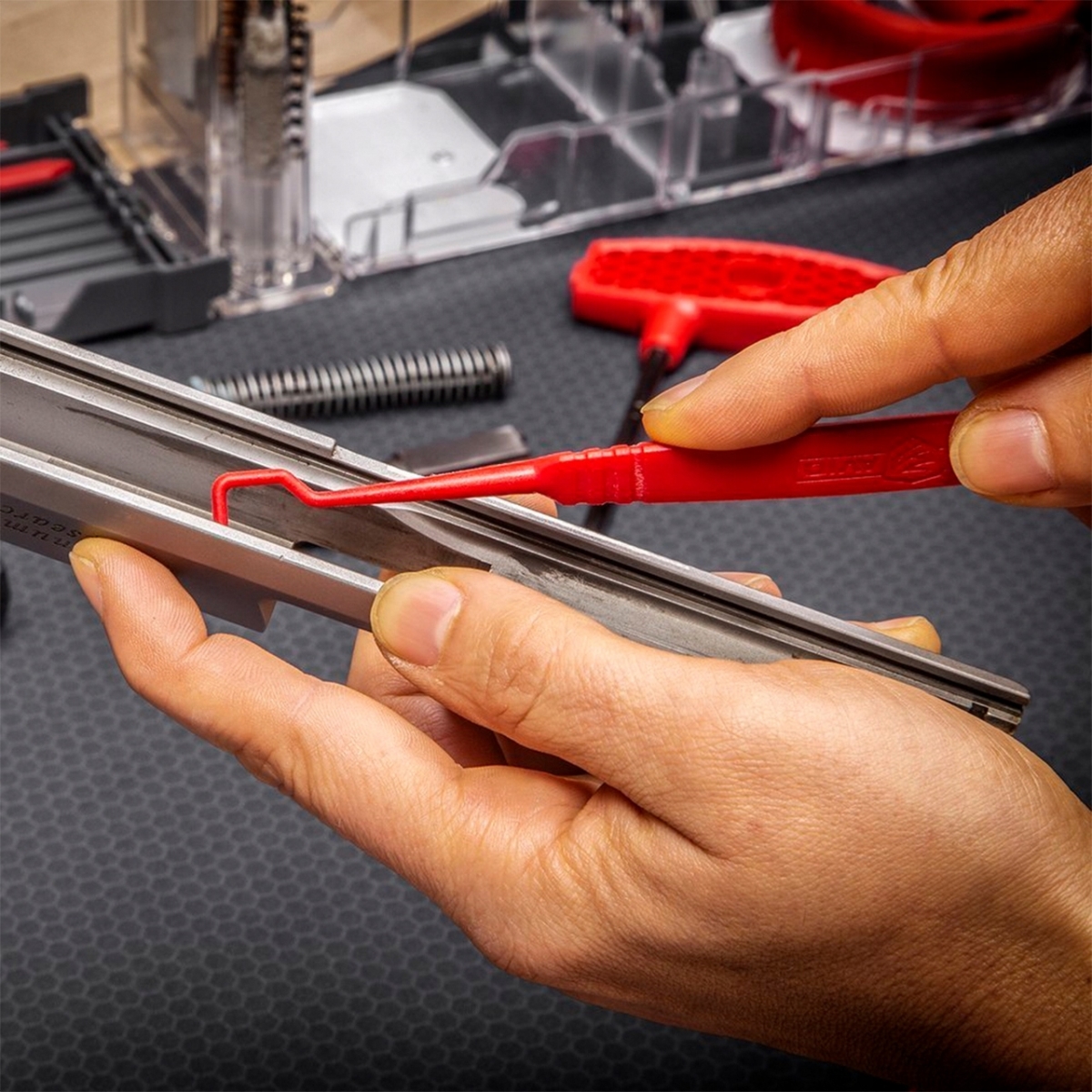 - Rozszerzony zestaw do pełnego czyszczenia lufy, iglicy i komory