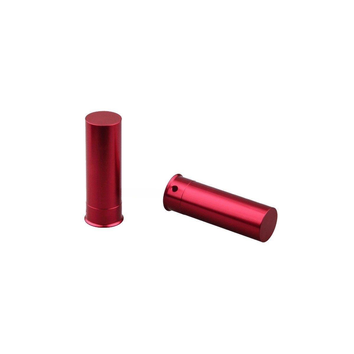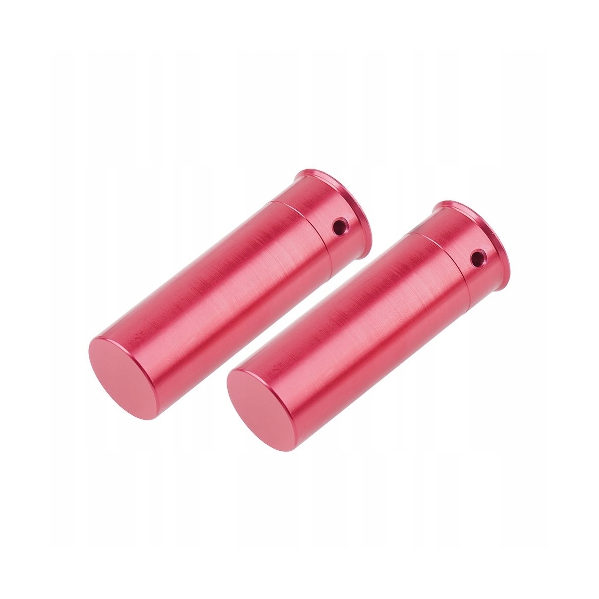 Zestaw dwóch aluminiowych zbijaków kaliber 12 Gauge w kolorze czerwonym, przeznaczonych do treningu strzeleckiego. W miejscu spłonki posiadają silikonowy krążek chroniący iglicę przy oddawaniu strzałów na sucho.