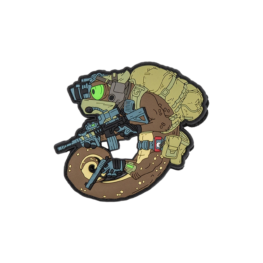 Wykonany z PVC emblemat, tzw. Morale Patch. Naszywka przedstawia kameleona doskonale przygotowanego do każdej sytuacji m.in. dzięki produktom taktycznym marki Helikon-Tex. Umieszczony od spodu rzep ostry umożliwia przyczepienie do odzieży, plecaków, toreb itd., dzięki czemu można je w łatwy sposób spersonalizować.