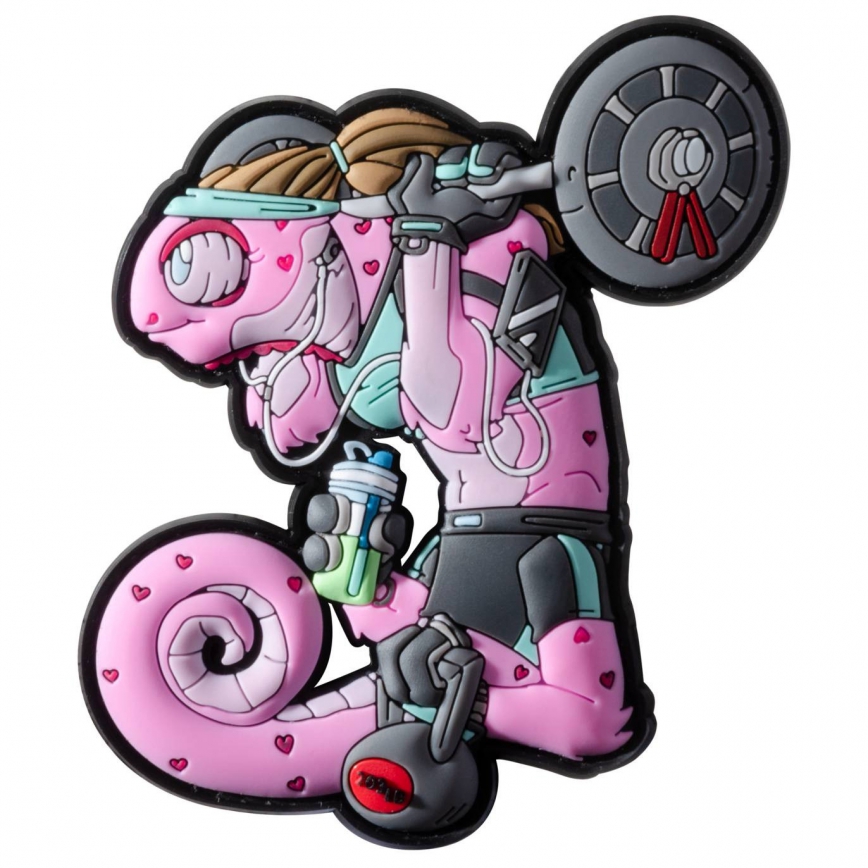 Wykonany z PVC emblemat, tzw. Morale Patch, inspirowany dziewczynami, dla których fitness jest całym życiem. Kameleon ma długie włosy związane w kucyk, dźwiga sztangę i kettlebella. Dodatkowo sam kameleon jest w typowo dziewczęcych kolorach, dzięki czemu jeszcze bardziej przykuwa wzrok. Umieszczony od spodu rzep ostry umożliwia przyczepienie do odzieży, plecaków, toreb itd., dzięki czemu można je w łatwy sposób spersonalizować.