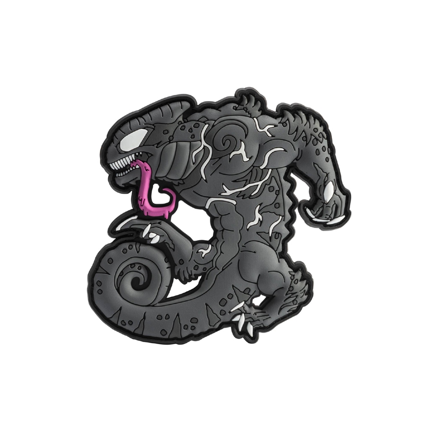 Wykonany z PVC emblemat, tzw. Morale Patch. Kameleon przypomina Symbiota z komiksu oraz filmu Venom, z jego charakterystycznymi żyłami, pazurami, ostrymi zębami oraz oczywiście długim jęzorem. Umieszczony od spodu rzep ostry umożliwia przyczepienie do odzieży, plecaków, toreb itd., dzięki czemu można je w łatwy sposób spersonalizować.