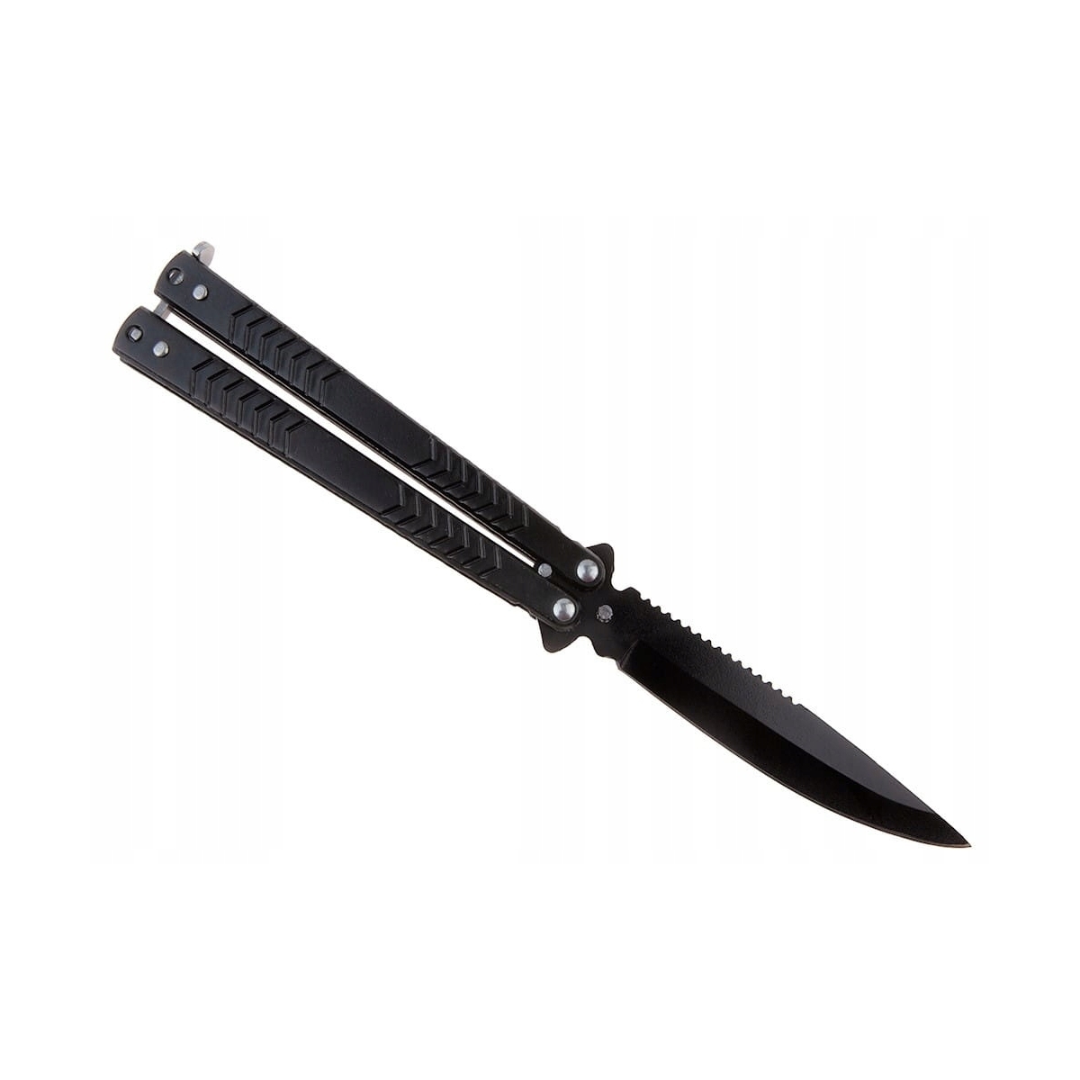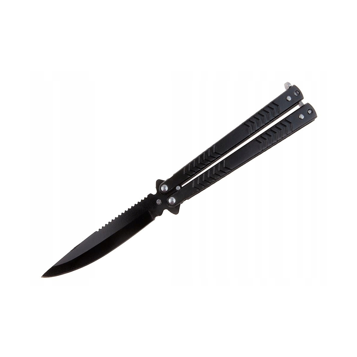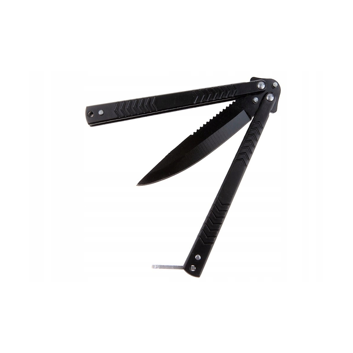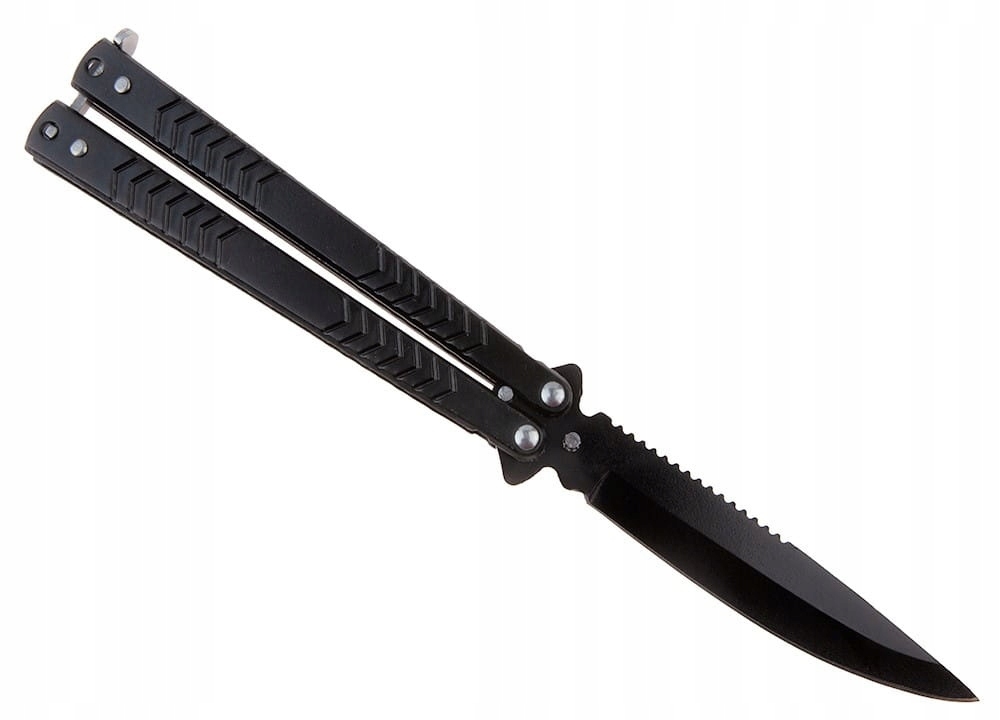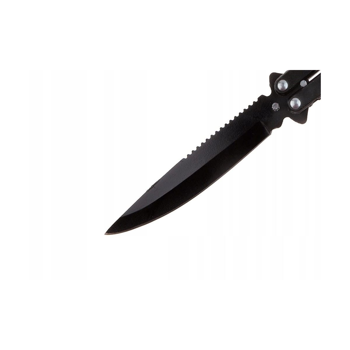 Nóż Motylek Treningowy N-465K - to model motylka treningowego. Dzięki klasycznemu ostrzu motylek można używać w tradycyjny sposób jako nóż EDC. Głownia o zmodyfikowanym profilu typu clip point została wykonana ze stali nierdzewnej 420. Na grzbiecie znajduje się ozdobne ząbkowanie.