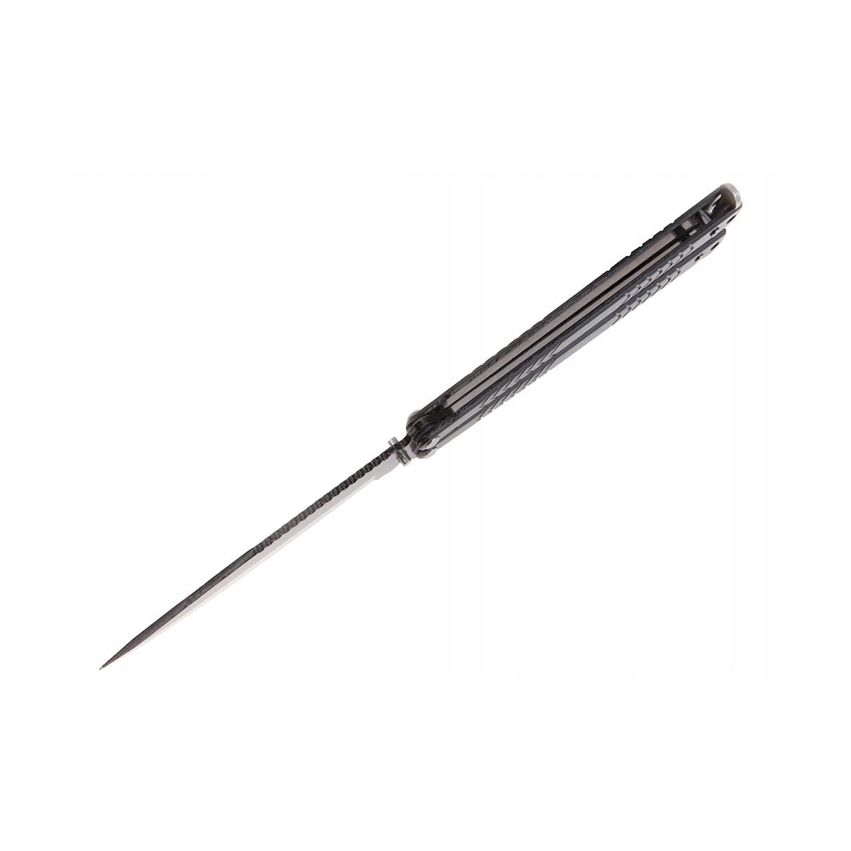 Stal została pokryta czarną powłoką ochronną, która niweluje efekt odblasku i maksymalizuje właściwości antykorozyjne. Efektownie żłobiona rękojeść składa się z dwóch ruchomych elementów, które w pozycji zamkniętej chronią ostrze noża. Blokada typu latch skutecznie zabezpiecza nóż przed niepożądaną zmianą pozycji.