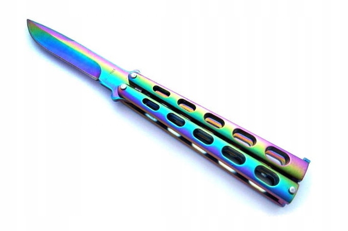 Nóż motylkowy RAINBOW N-497C -został wykonany z metalu i przeznaczony jest do użytku codziennego.