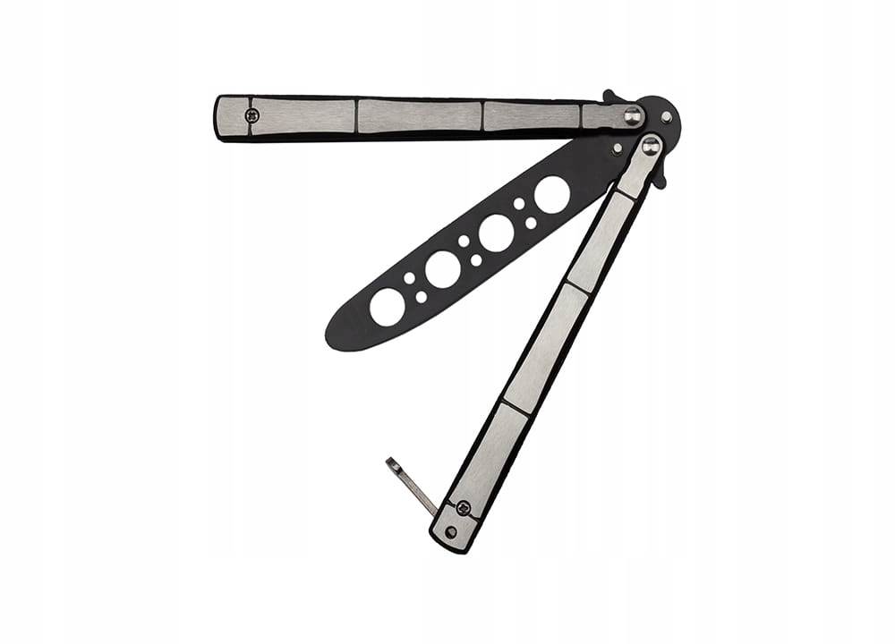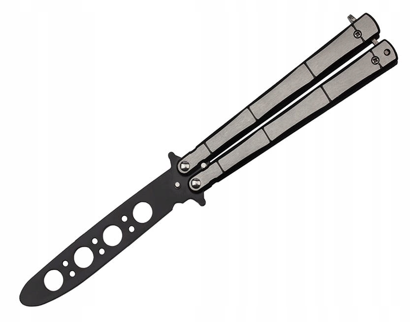 Nóż motylek treningowy srebrno-czarny N-500D - to model motylka treningowego.