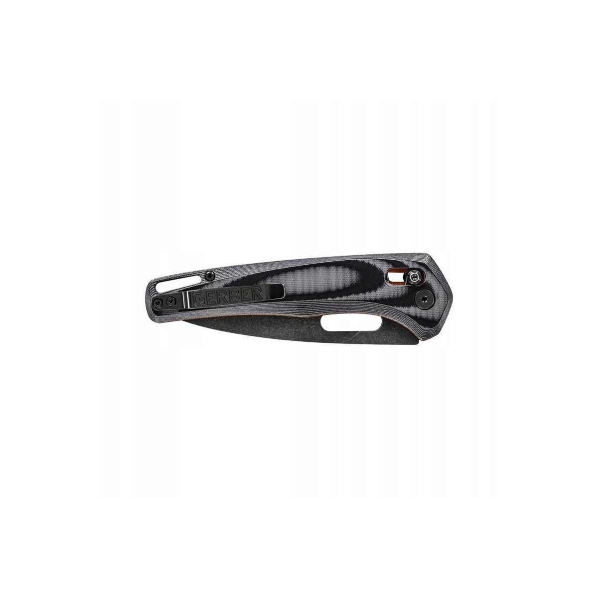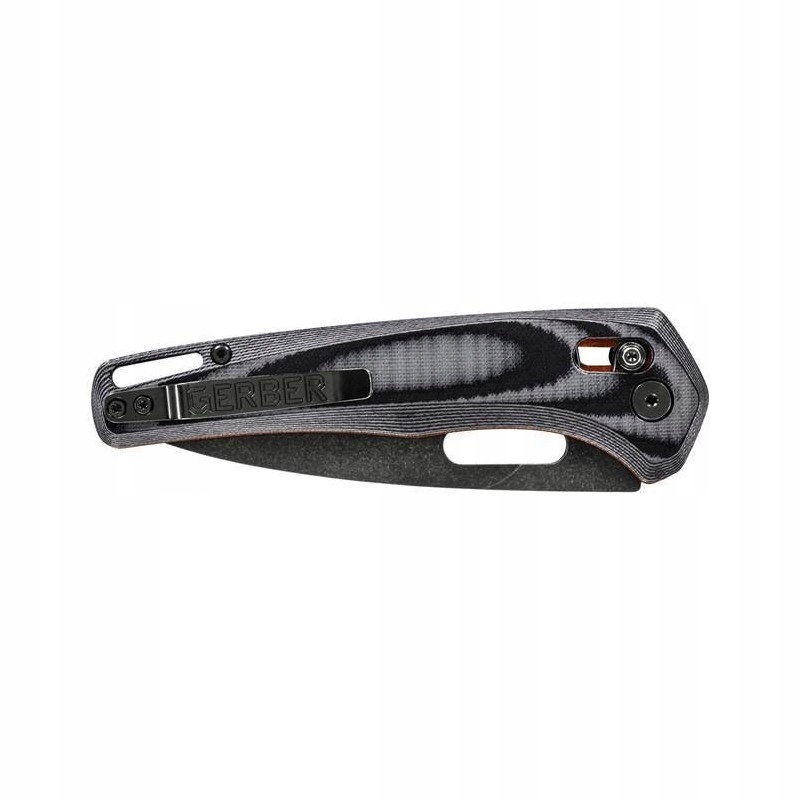 Nóż posiada stalowy klips, pozwalający na zaczepienie noża o krawędź kieszeni lub paska.