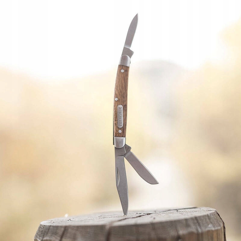 - Lekki kompaktowy nóż w formie scyzoryka wyposażony w trzy ostrza różnej wielkości.
