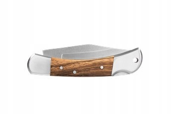 Rękojeść posiada okładziny z drewna wykończone stalowymi bolsterami. Stalowe piny wzmacniają drewniane okładki.