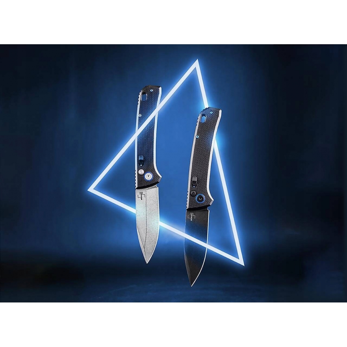 Solidna blokada z dodatkowym suwakiem podwójnie zabezpiecza ostrze podczas użytkowania i znacznie minimalizuje ryzyko zacięcia się podczas użytkowania. Przypadkowe otwarcie się noża np. w kieszeni spodni również należy do przeszłości dzięki zatrzaskowi zabezpieczającemu. Teksturowana rękojeść zapewnia pewny chwyt nawet w mokrych warunkach. Dekoracyjne akcenty są ustawiane przez anodowane śruby i niebieską śrubę osi ostrza.