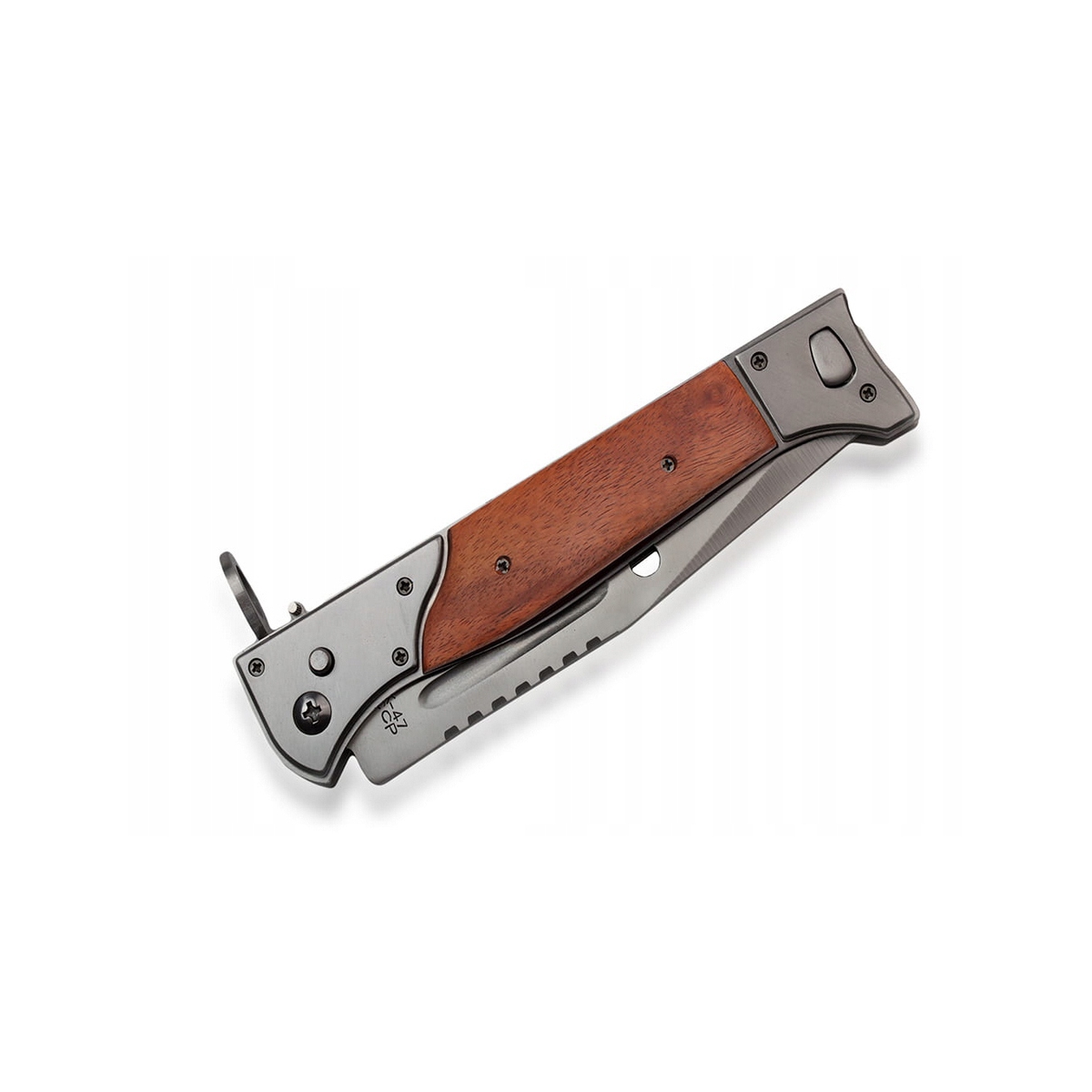 Nóż sprężynowy N-708 AK-47 - to dużych rozmiarów model do użytku codziennego. Ostrze wykonane zostało ze stali nierdzewnej 420. Rękojeść posiada okładziny drewniane.