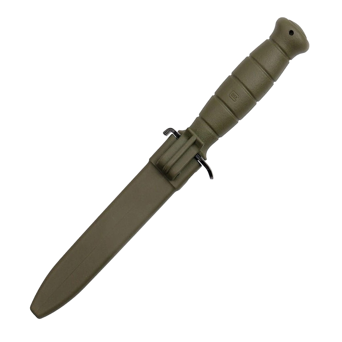 Rękojeść noża została wykonana z tego samego polimeru którego używa się do produkcji pistoletów Glock. Przed zsunięciem się dłoni na ostrze chroni stalowy jelec, którego kształt w górnej części pozwala na używanie go jako otwieracza do kapsli. Polimerowa pochewka w kolorze beżowym, posiada bardzo solidny zatrzask, który zabezpiecza nóż przed niekontrolowanym wysunięciem się z niej. Mocowana jest do paska za pomocą 60 mm szlufki.