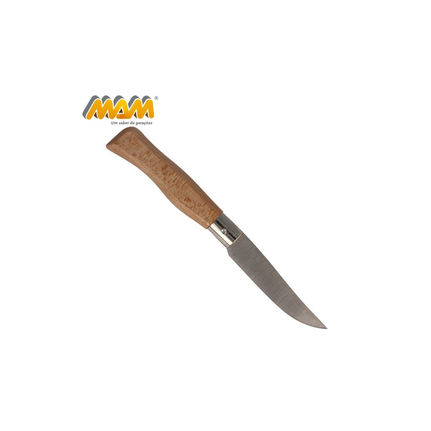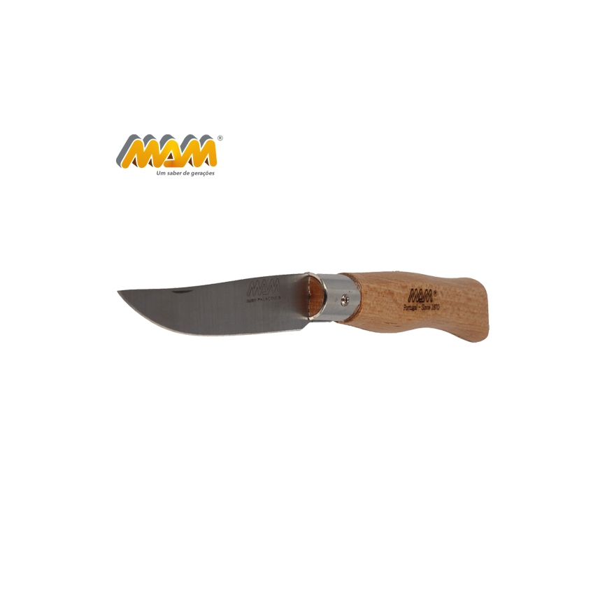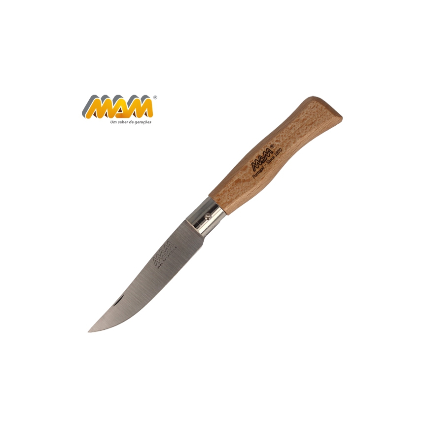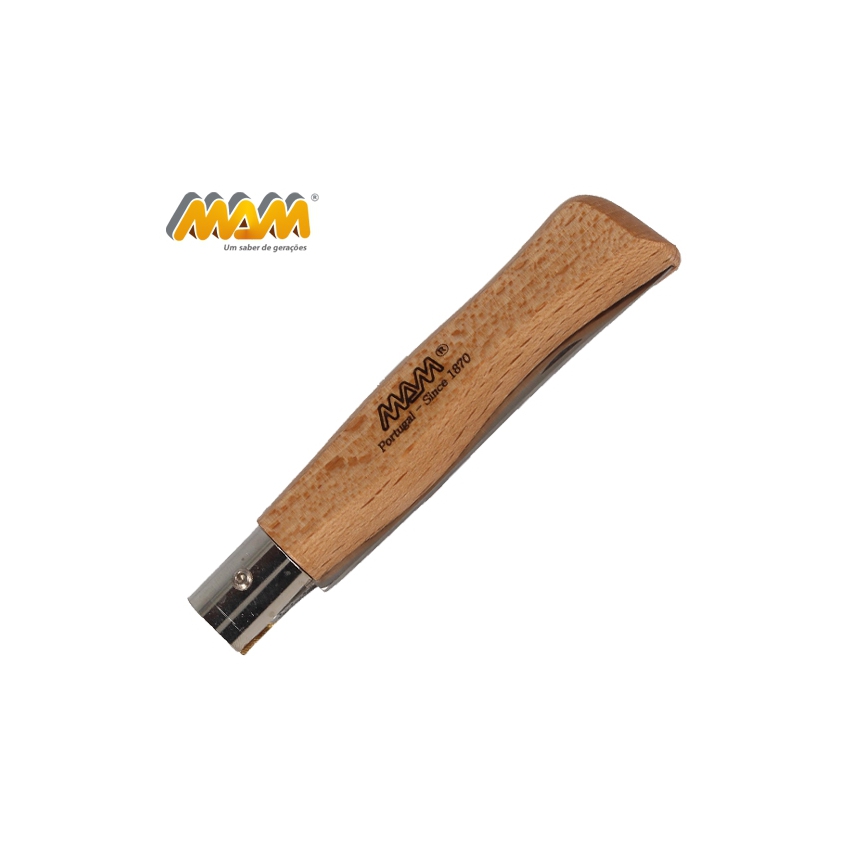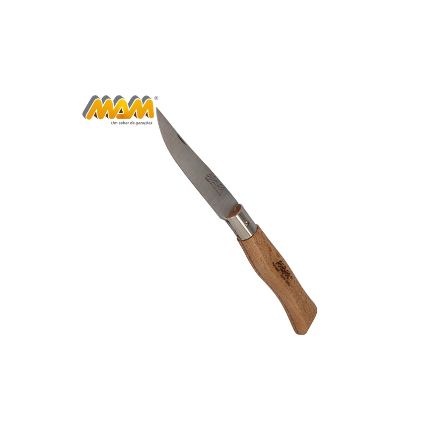Nóż składany MAM FILMAM 2007 przeznaczony do użytku codziennego. Wyprodukowany ręcznie przez portugalskiego producenta. Ostrze wykonane ze stali nierdzewnej. Rękojeść z drewna bukowego z bardzo dobrym wyprofilowaniem na dłoń. Nóż nie posiada blokady. Ostrze otwiera się za pomocą wcięcia na paznokieć.