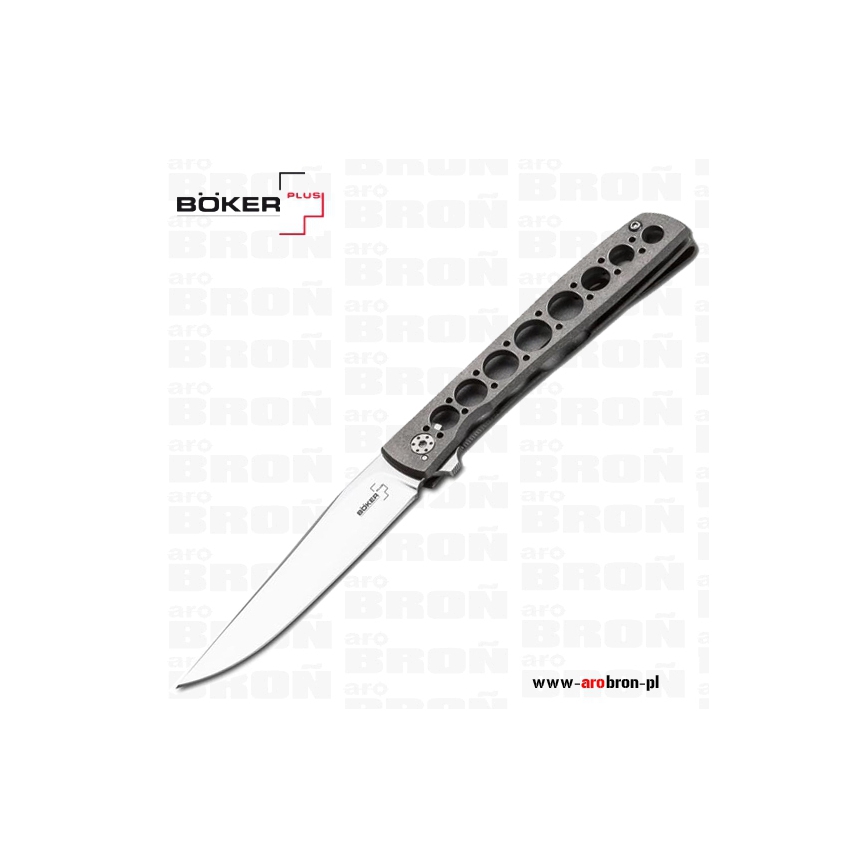 Nóż składany Boker Plus Urban Trapper przeznaczony do codziennego użytku. Jego zaletą jest niewielka waga i wysokiej klasy materiały z kórego został wykonany. Ostrze z japońskiej stali VG-10 charakteryzuje się długim trzymaniem ostrości oraz łatwym ostrzeniem. Rękojeść o wpół otwartej budowie wykonano z tytanu. Do szybkiego otwierania noża służy flipper. W Urban Trapper zastosowano łożyskowanie klingi co zapewnia bardzo płynne działania. Ostrze zabezpiecza blokada frame-lock.