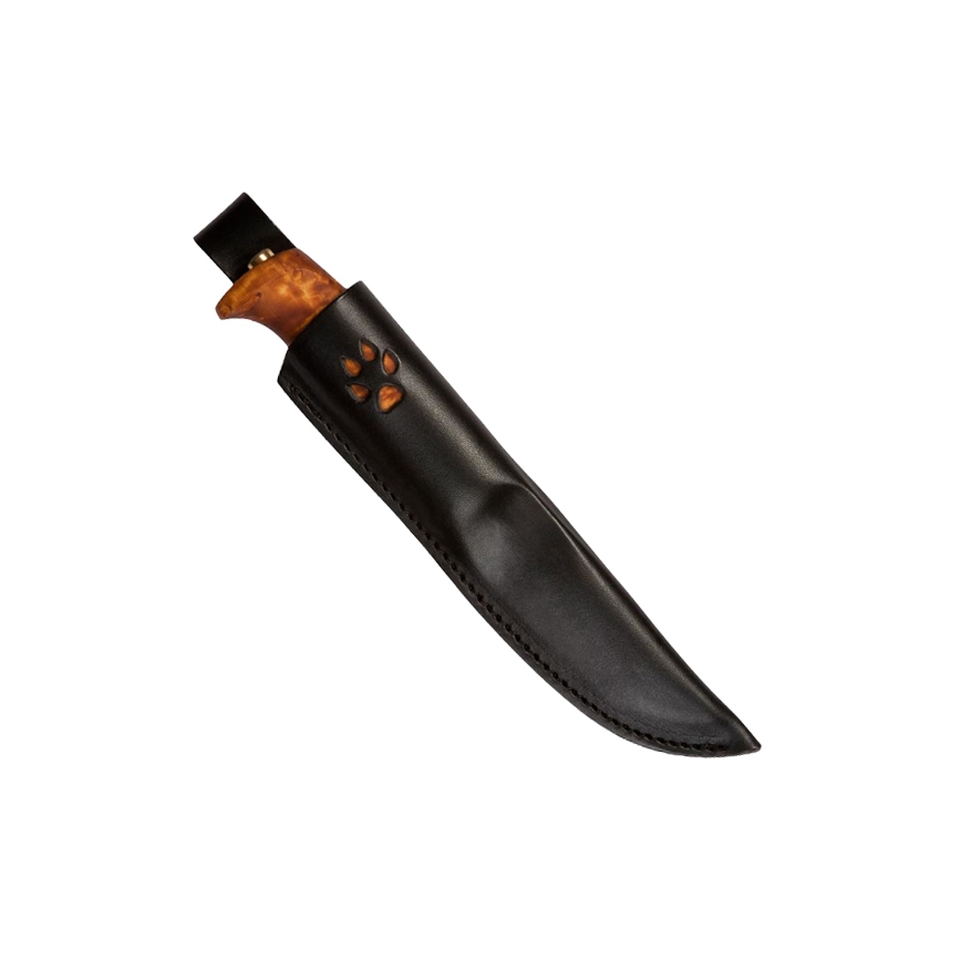 Pochwa znajdująca się w komplecie została ręcznie wykonana ze specjalnie garbowanej skóry, pokrytej smarem siodłowym, zwiększając trwałość i nadając połysk. Pochwa inspirowana jest tradycyjnym skandynawskim design'em z motywem śladu rysia.