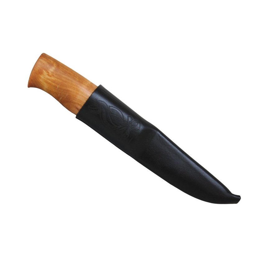 Odpowiedni profil rękojeści zapewnia pewny chwyt podczas pracy. Pochwa znajdująca się w komplecie została ręcznie wykonana ze specjalnie garbowanej skóry, pokrytej smarem siodłowym zwiększając trwałość i nadając połysk.
