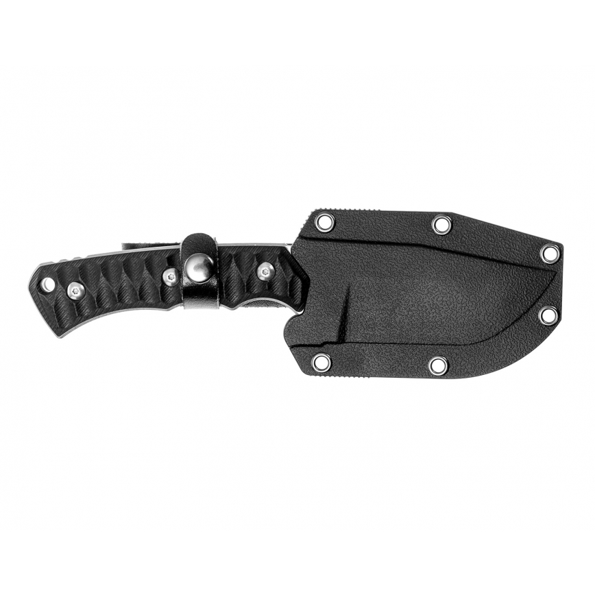 - Rękojeść o ergonomicznym kształcie posiada okładziny z laminatu G10.