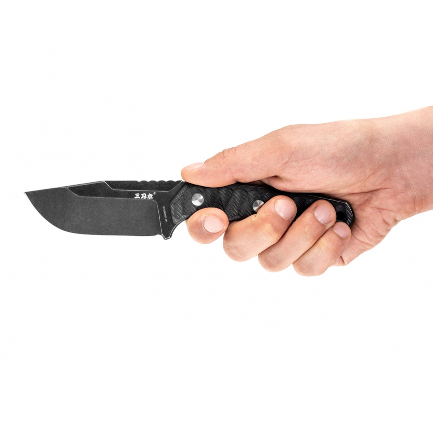 Nóż stały Sanrenmu S738 Blackwash (K714) - 8Cr13MoV, clip point, full tang, kabura kydex