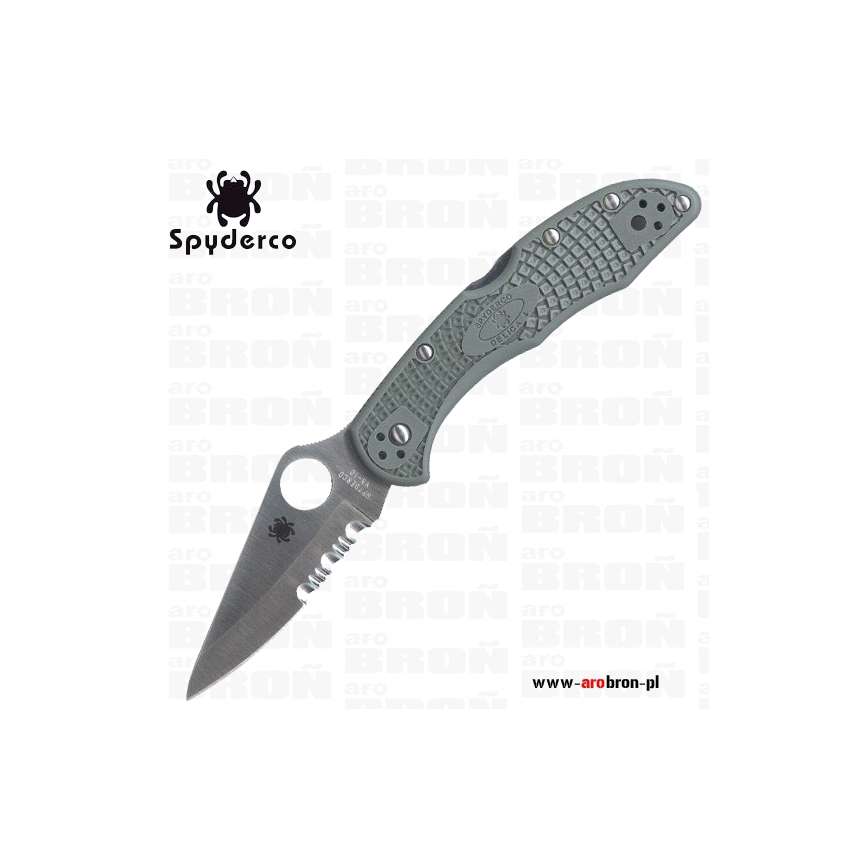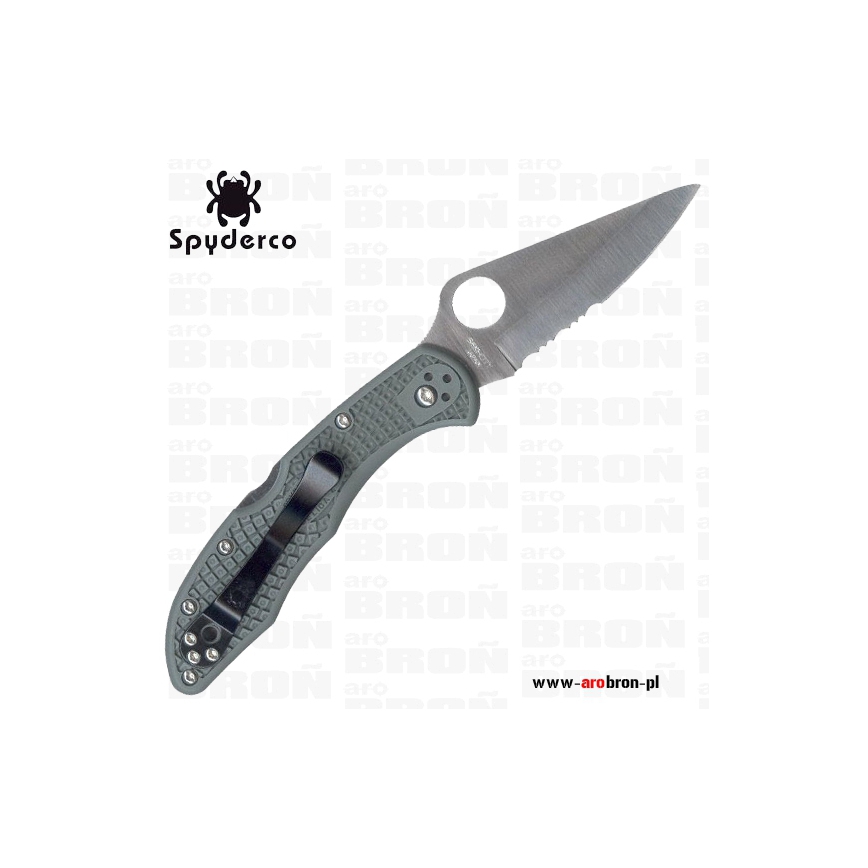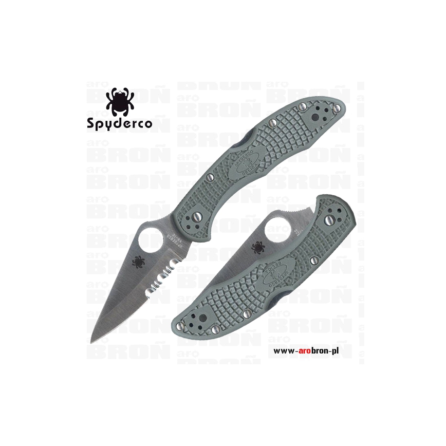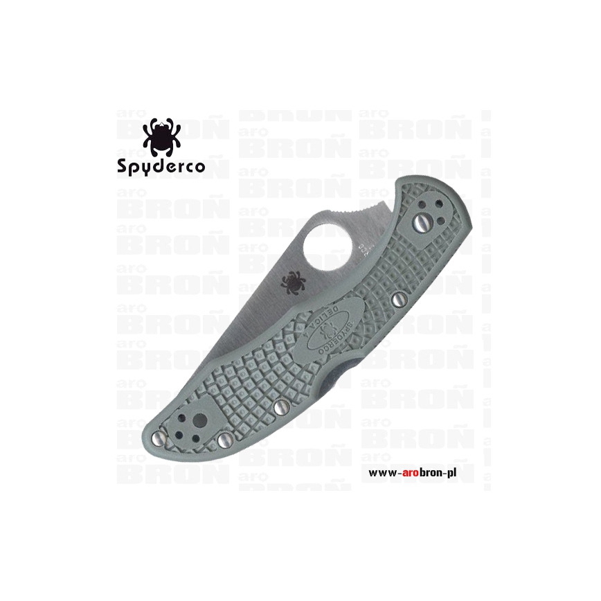 Delica to sztandarowy model Spyderco. Pierwsza wersja powstała w 1990 roku i od razu została okrzyknięta hitem. Był to jeden z pierwszych na świecie modeli noża, który można dopiąć do kieszeni za pomocą klipsa oraz szybko otworzyć jedną ręką. Wersja z pełnym płaskim szlifem i okładzinami z materiału FRN w kolorze foliage green.
