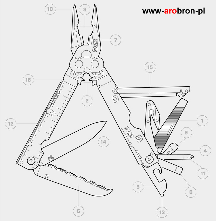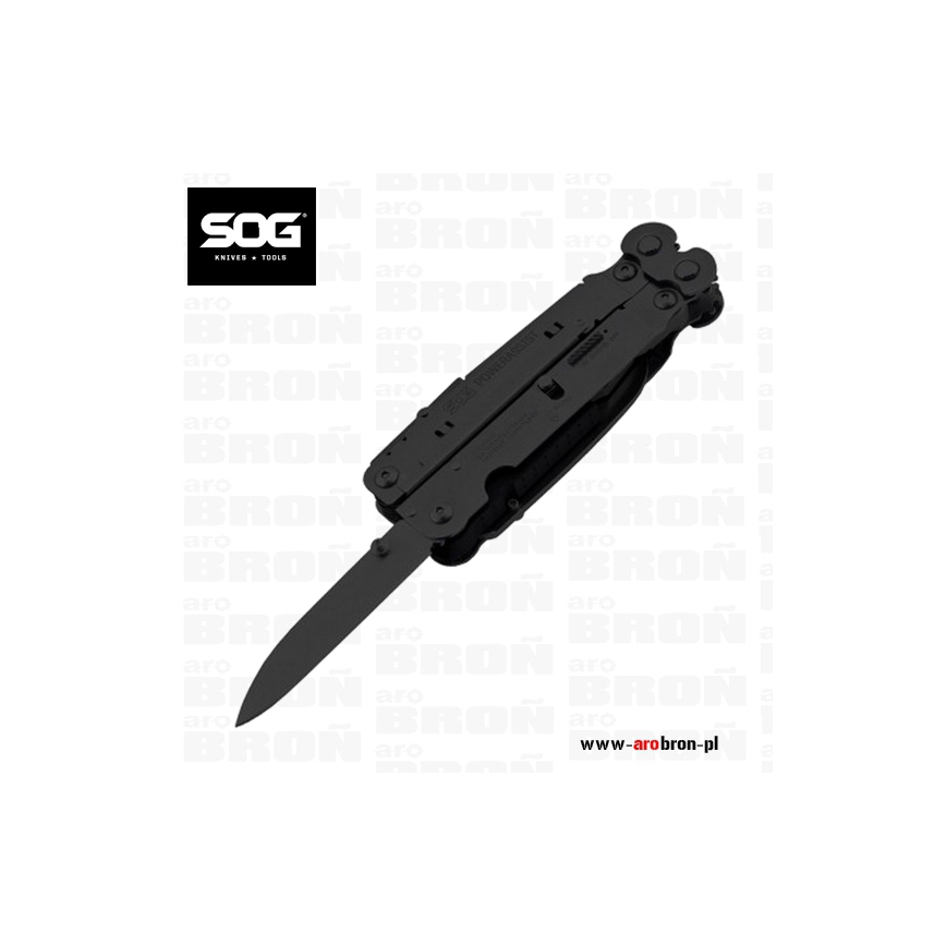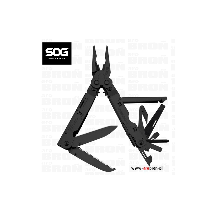 Multitool SOG PowerAssist Black Oxide Nylon Sheath - to wielofunkcyjne narzędzie renomowanej amerykańskiej firmy SOG. Multitool posiada 16 podstawowych narzędzi, dzięki którym mając go przy sobie nie straszne będą nam drobne naprawy. Cechą wyróżniająca multitoole SOG jest umiejscowienie zaciskacza do przewodów w rękojeści, a nie w kombinerkach. Całość wykonana została z wytrzymałej, hartowanej stali nierdzewnej 420 natomiast wykończony został czarną powłoką Oxide, która chroni multitool przed korozją. Firma Sog posiada opatentowaną technologię wspomagania otwierania toola SOG Assisted Technology™, która pozwala nam na łatwe otwieranie toola jedną ręką. Dodatkowo opatentowana została kontrukcja wzmacniająca nacisk kombinerek - Compound Leverage™. Dla bezpieczeństwa multitool posiada blokadę narzędzi.