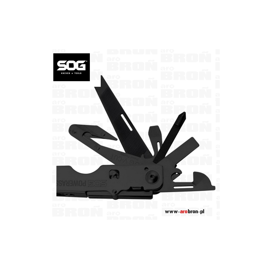 Multitool SOG PowerAssist Black Oxide Nylon Sheath (B66N-CP) - czarny, 16 funkcji, stal 420, nylonowe etui