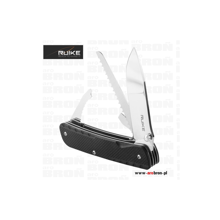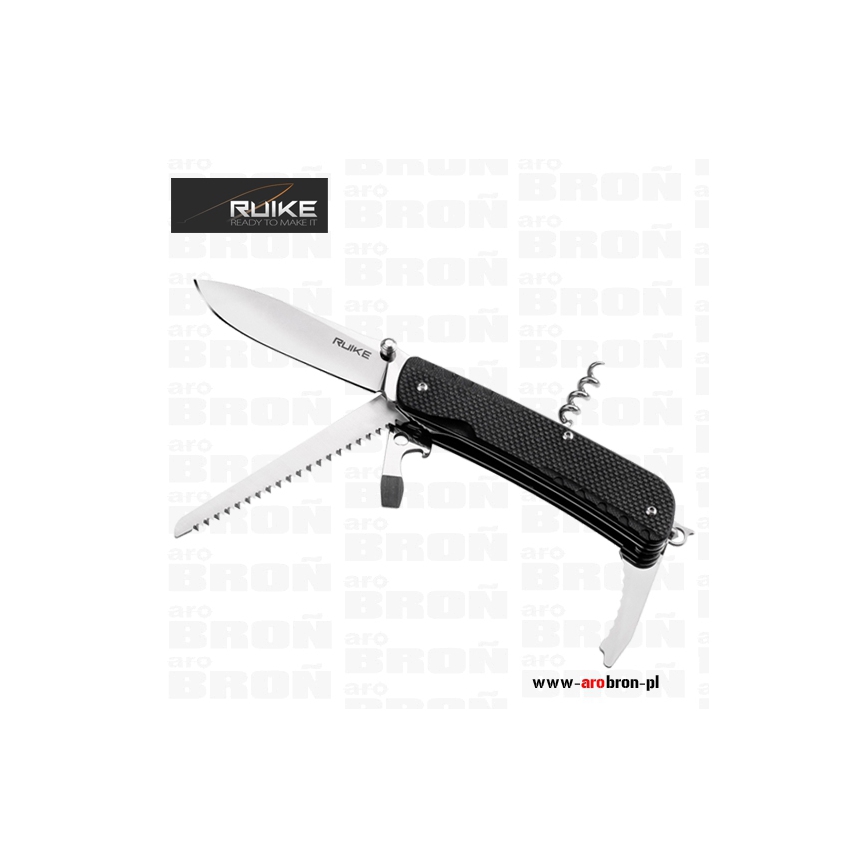 Scyzoryk Ruike LD32-B - to scyzoryk posiadający 13 przydatnych funkcji, który sprawdzi się podczas wycieczek, ale również jako narzędzie użytku codziennego. Okładzina scyzoryka wykonana została z wytrzymałego kompozytu G10 o antypoślizgowej fakturze w kolorze czarnym. Ostrze oraz narzędzia wykonano z trwałej i łatwej do naostrzenia stali Sandvik 12C27 (58-59) HRC. Scyzoryk posiada blokadę głównego ostrza typu Liner Lock, dzięki której nóż nie złoży się podczas użytkowania. Scyzoryk posiada stalowy klips, dzięki któremu łatwo zamontujemy scyzoryk np. o krawędź kieszeni, ale również key-ring, którym możemy zamocować scyzoryk do breloczka bądź kluczy.
