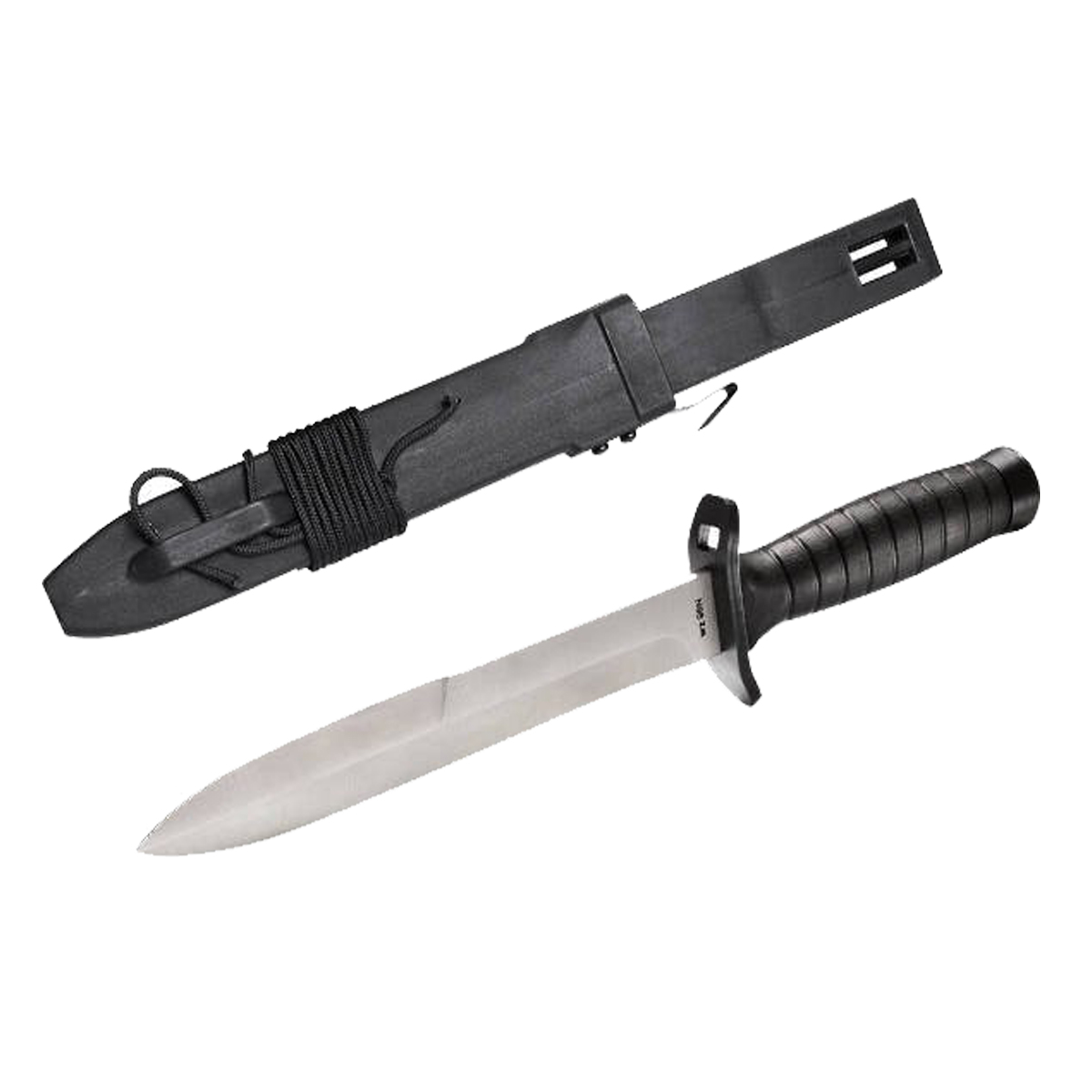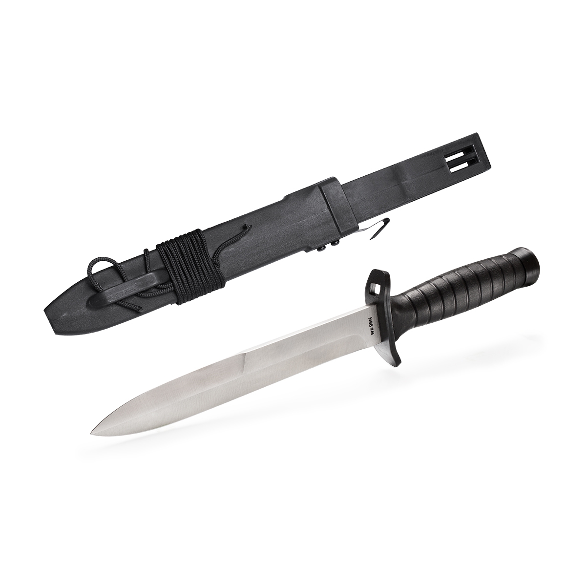 W komplecie pochwa - wykonana z mocnego tworzywa sztucznego, przytrzymująca nóż za pomocą sprężystego zatrzasku.
