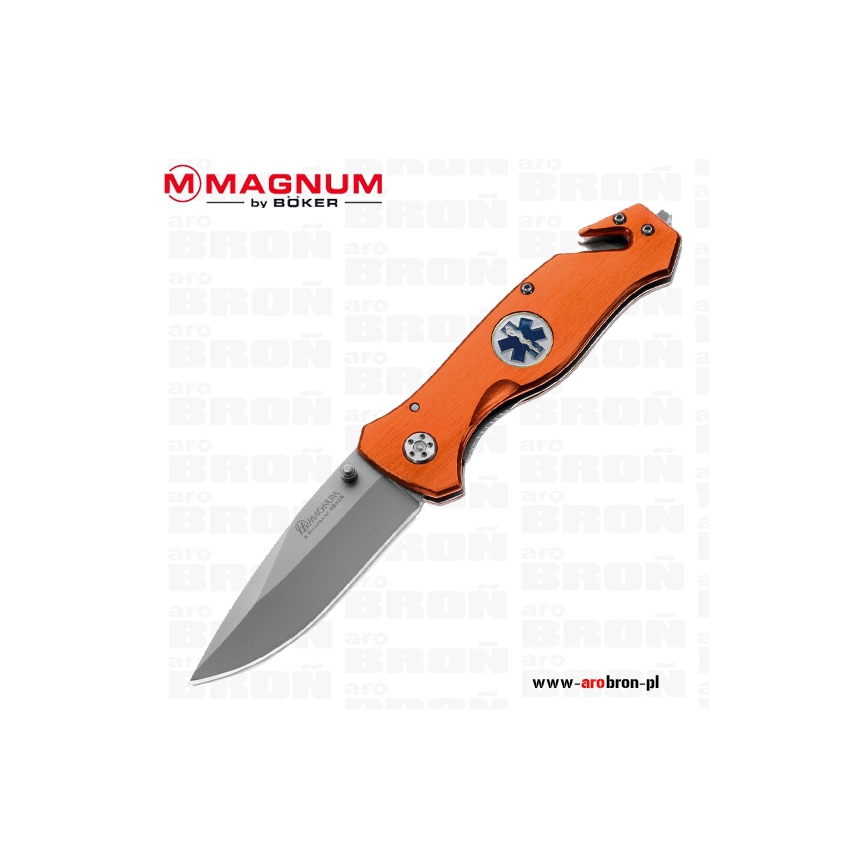 Nóż składany Boker Magnum Medic dedykowany służbom ratunkowym. Ostrze o profilu drop point wykonane zostało ze stali nierdzewnej 440A pokryte powłoką antyodblaskową.