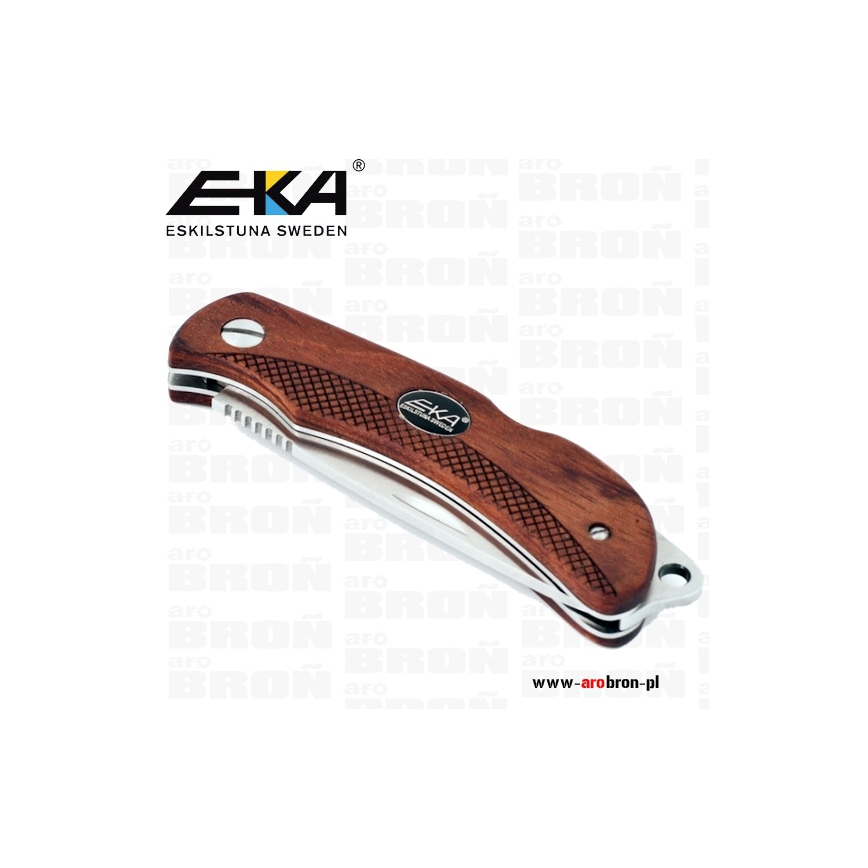 EKA SWEDE 8 Wood - to łatwo ostrzący się składany nóż myśliwski z ostrzem o długości 7,5cm ze stali nierdzewmej Sandvik 12C27. Wersja noża - rękojeść wykonana z drewna Bubinga.