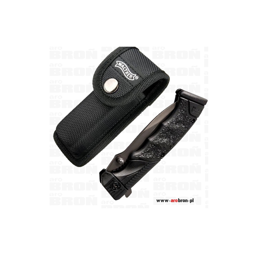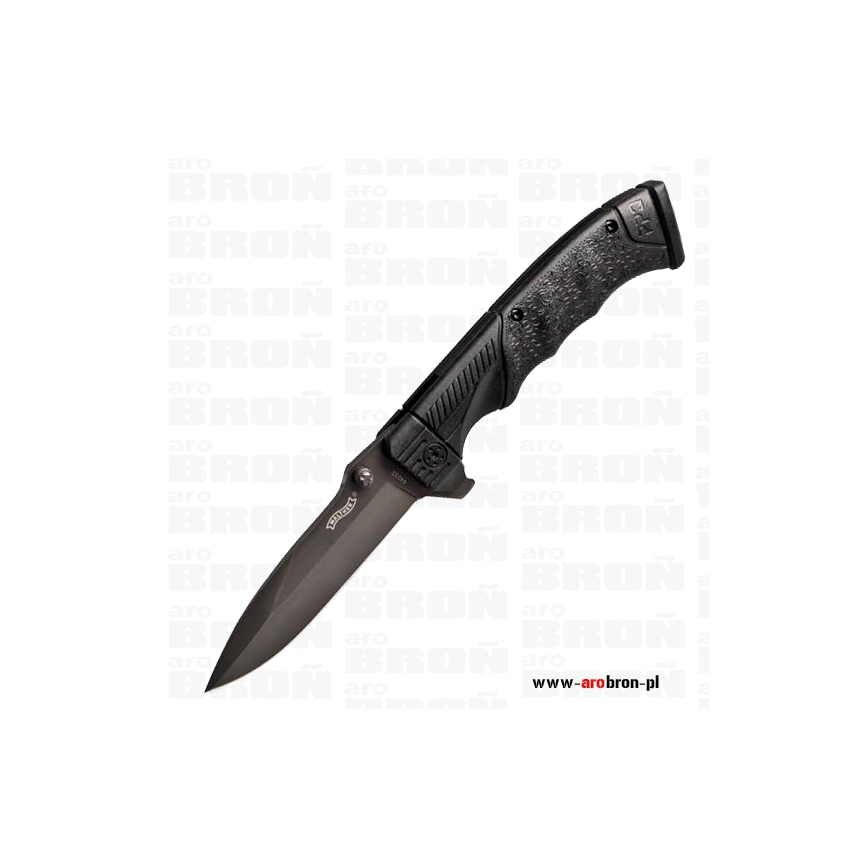 Głownia noża to klasyczny spear point, który zapewnia nie tylko świetne właściwości tnące, ale również dzięki agresywnemu czubkowi świetną penetrację. Zastosowana stal nierdzewna 440, jest dobrym wyborem na materiał noża codziennego użytku, ze względu na fakt, że dosyć długo utrzymuje dobrą ostrość roboczą i stosunkowo szybko się ją ostrzy w warunkach terenowych. Polimerowe okładziny zostały ergonomicznie ukształtowane, a ich antypoślizgowe fakturowanie jest identyczne jak w pistolecie Walther PPQ, co powoduje, że nóż pewnie trzyma się ręki, nawet podczas pracy w rękawicy oraz zamoczeniu lub zatłuszczeniu ręki.