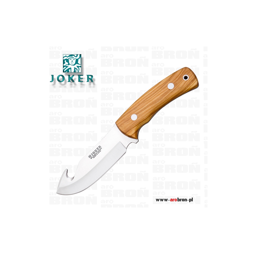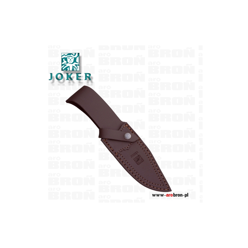 Nóż stały JOKER mod. CO56 - to stały nóż o przeznaczeniu myśliwskim hiszpańskiej firmy Joker. Nóż posiada głownię wykonaną z odpornej na ścieranie stali molibdenowo - wanadowej o długości 12,5 cm. Dzięki głowni typu drop point nóż posiada znakomite właściwości tnące, a zaostrzony wewnątrz hak ułatwia większość prac myśliwskich, takich jak oprawianie upolowanej zwierzyny czy skórowanie. Znakomicie nadaje się do przecinania lin oraz taśm, może służyć jako narzędzie do przecinania pasów bezpieczeństwa bez narażania na skaleczenie. Rękojeść noża wykonana została z drewna oliwnego. Na końcu rękojeści znajdziemy ring do zamocowania np. smyczy. W zestawie z nożem znajduje się skórzana kabura do bezpiecznego przenoszenia noża. Nóż zapakowany został w estetyczne tekturowe pudełko, dzięki czemu może być świetnym pomysłem na prezent.