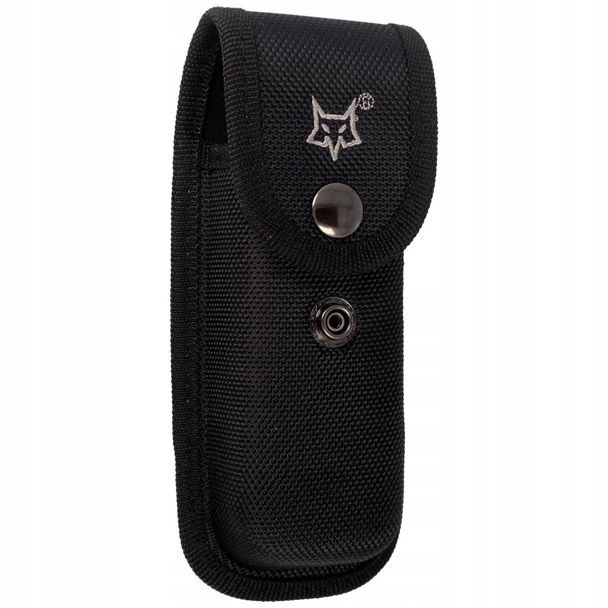 Kabura FOX - pasuje do noży o maksymalnej długości 140 mm. Ładownica w kolorze czarnym, wykonana z odpornego na wilgoć, pleśń oraz uszkodzenia mechaniczne nylonu balistycznego. Klapka zapinana na zatrzaski typu Prym. Mocowanie do pasa lub oporządzenia umożliwia przenoszenie noża w pozycji poziomej lub pionowej.