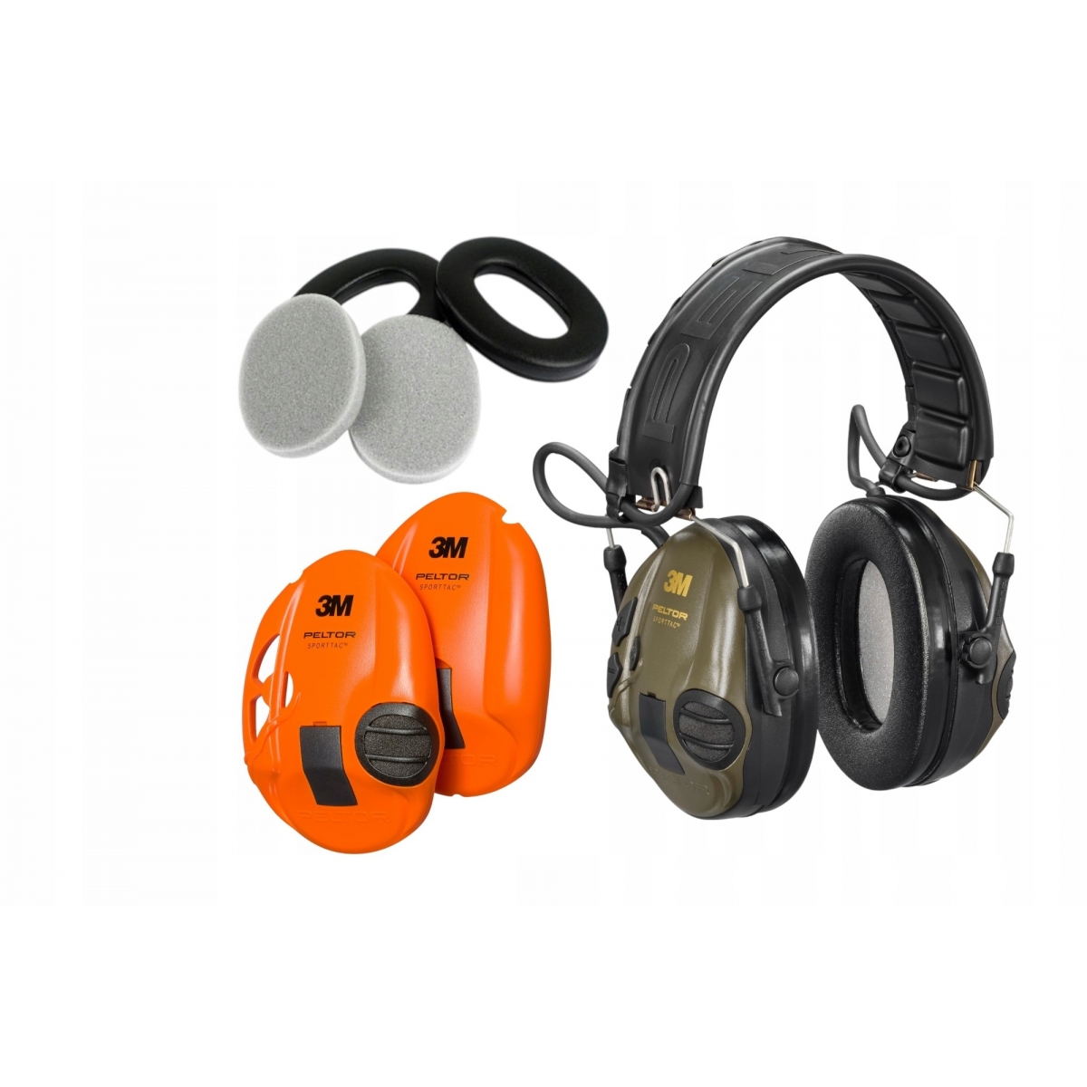 Aktywne ochronniki słuchu 3M PELTOR SportTAC zielony/pomarańczowy + zestaw wymienny HY21