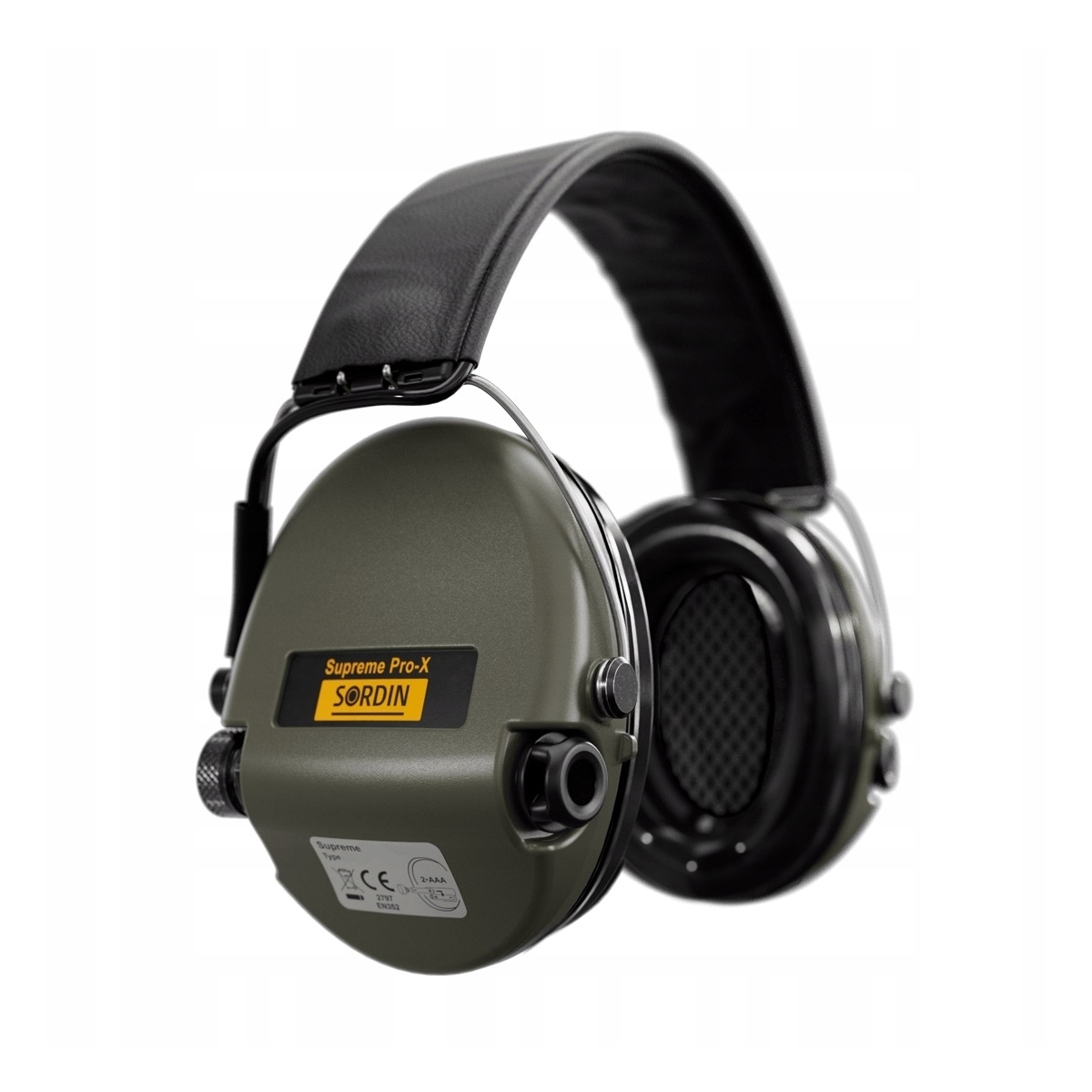 Słuchawki aktywne Sordin Supreme Pro-X – Czarna skórzana opaska, zielone czasze
