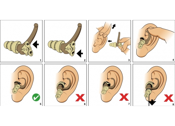 - tryb otwarty - pozwala słyszeć dźwięki otoczenia (w tym np. instrukcje, komendy) i umożliwia prowadzenie rozmowy, a więc zapewnia w ten sposób orientację sytuacyjną. W momencie, gdy pojawia się hałas impulsowy - wbudowany filtr akustyczny częściowo redukuje przepływającą falę dźwiękową i obniża natężenie hałasu. Tryb otwarty powinno się stosować, gdy mamy do czynienia z hałasem impulsowym (np. strzały na strzelnicy otwartej, poligonie czy na polu walki) i istnieje potrzeba komunikowania się z innymi osobami lub generalnie potrzeba zachowania orientacji sytuacyjnej.