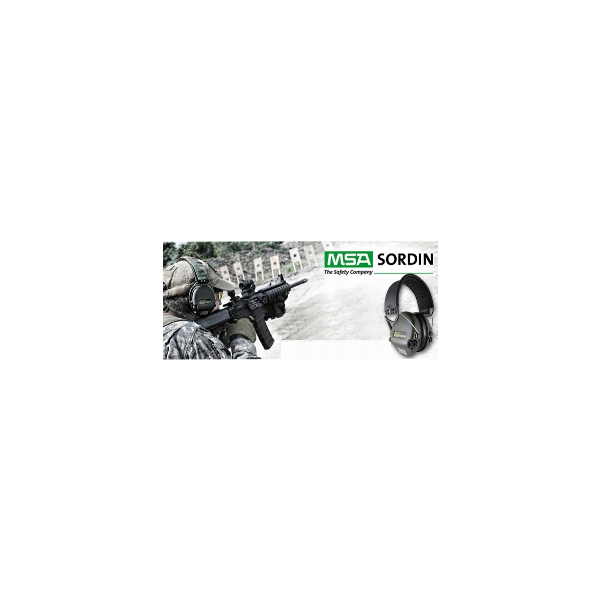 Strzeleckie ochronniki słuchu MSA Sordin Supreme PRO-X - to to najwyższy model aktywnych ochronników słuchu dla strzelców i myśliwych wiodącego szwedzkiego producenta. Wyróżnikiem ich na tle całej linii jest wodoodporność mikrofonów w normie IPX67, która została sprawdzona w Swedish National Testing and Research Institute. Słuchawki wyposażone są w system ochrony dźwięku Hear2, który charakteryzuje się tym, że posiada aż 4 różne profile ochrony dźwięku (Myślistwo, Skupienie, Strzelectwo, Komunikacja), które możemy stosować naprzemiennie.