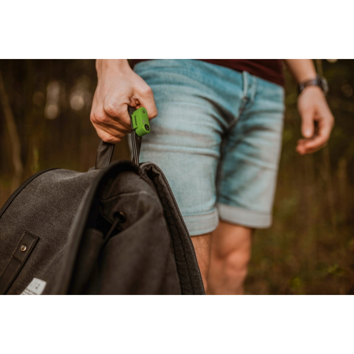 - TickLess Active Green przytwierdź z gumowym pierścieniem do sznurowadła i przeciągnij gumowy pasek pod sznurowadłem zaciągając gumkę na rowek po drugiej stronie urządzenia. W celu ponownego mocowania upewnij się, że pierścień gumowy jest dobrze zamontowany, nie przykrywaj urządzenia, sprawdzaj okresowo aktywność - dioda powinna wyraźnie zamrugać.