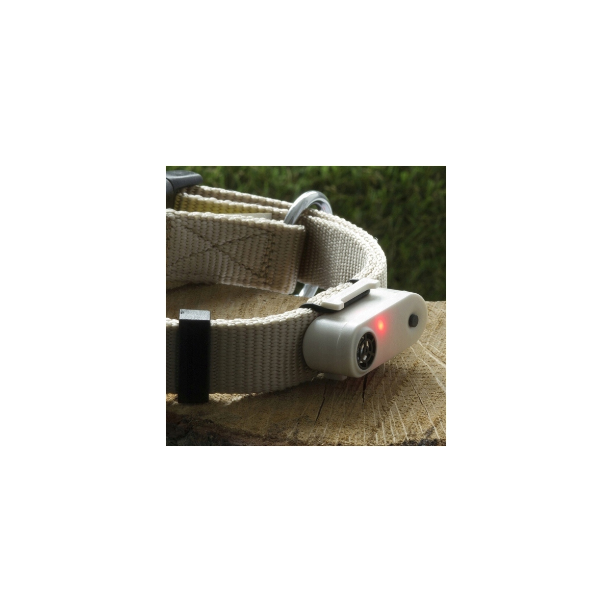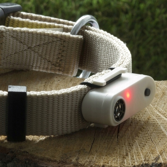 Odstraszacz można łatwo założyć na obrożę - jest także bardzo lekki, więc nie obciąża zwierzęcia.