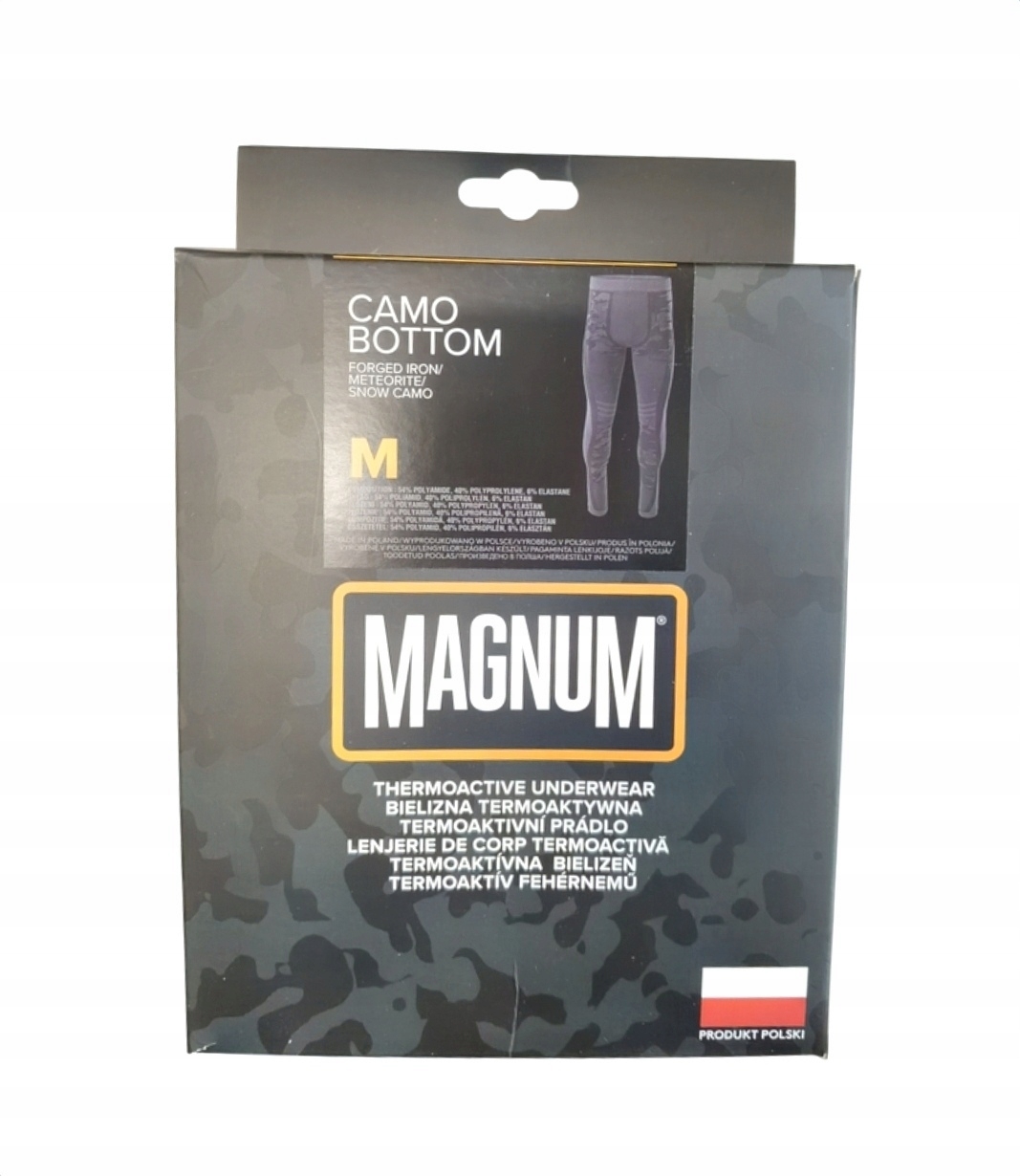 Spodnie kalesony termoaktywne Magnum CAMO BOTTOM M - to element pierwszej warstwy odzieży, wykorzystywany podczas niewielkich chłodów lub w tracie intensywnych aktywności w środowisku wymagającym ochrony skóry nóg. Profesjonalna bielizna termoaktywna wykonana z technologii bikomponentalnej. Zróżnicowana higroskopijność poszczególnych warstw utrzymuje ciało w suchym mikroklimacie i zabezpiecza przez niekorzystnymi warunkami atmosferycznymi. Naturalne właściwości polipropylenu sprawiają, że jest ona w 100% antybakteryjna. Zastosowanie płaskich szwów oraz trójwymiarowa elastyczność zapewniają doskonały komfort użytkowania.