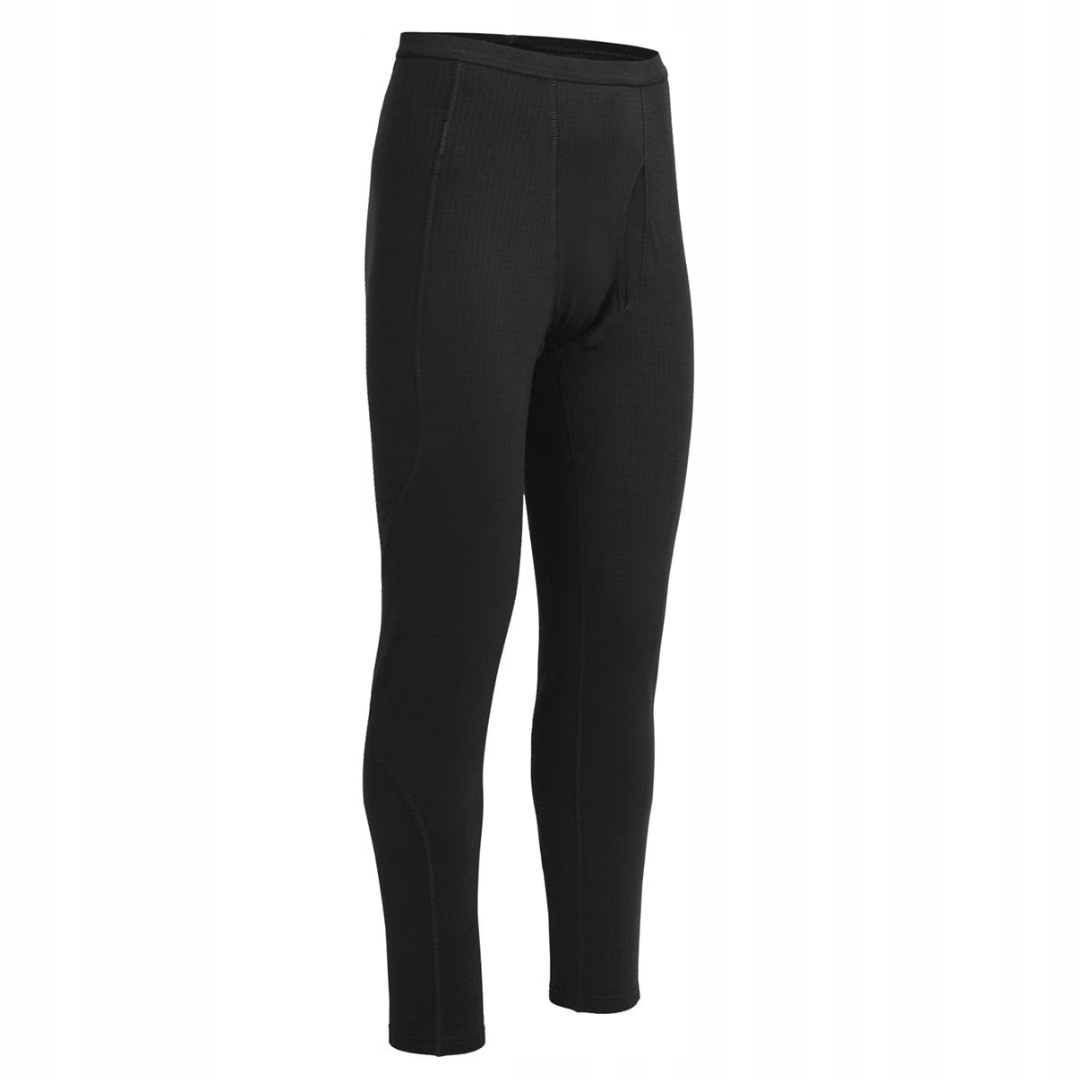 Kalesony Helikon US LVL BLACK- to wygodne, termoaktywne kalesony renomowanego polskiego producenta Helikon, stanowiące drugą warstwę systemu umundurowania zimowego Sił Zbrojnych USA. Kalesony wykonane z mieszanki poliestru i elastanu, dzięki czemu świetnie odprowadzają wilgoć i zapewnia komfort termiczny i ruchowy. Kalesony posiadają wygony rozporek i płaskie szwy zmniejszające ryzyko otarć oraz dopasowany krój, ułatwiający stosowanie wielu warstw odzieży. Wewnętrzna strona bielizny o unikalnym splocie „łapie” i kumuluje ciepłe powietrze, utrzymując je blisko ciała, podczas gdy specjalne kanaliki odprowadzają wilgoć na zewnątrz.