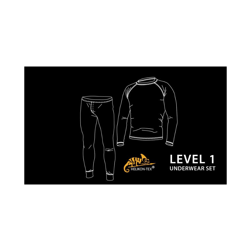 Bielizna termoaktywna HELIKON KOMPLET US LEVEL 1 - komplet bielizny termoaktywnej wykonany z szybkoschnącej dzianiny poliestrowej Helikon-Tex® Quick Dry. Materiał przylega do ciała i zapewnia wysoką oddychalność materiału. Bielizna chroni naszą skórę przed otarciami, podrażnieniami, a także zapewnia szybkie odprowadzanie wilgoci oraz zwiększa powierzchnię parowania, przez co pozostaje sucha na długi czas. Bielizna przeznaczona do każdych warunków klimatycznych.
