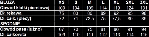 Tabela rozmiarów: