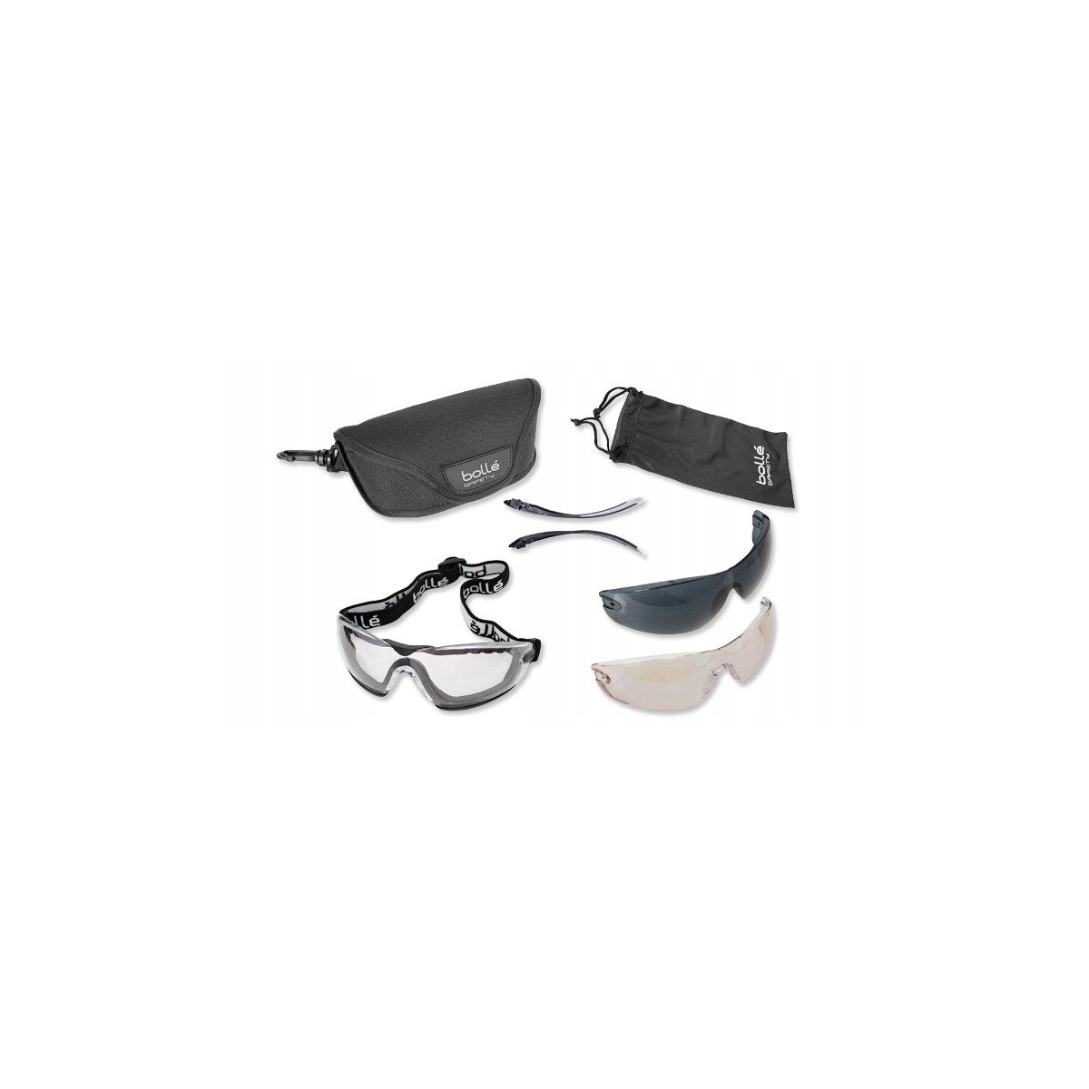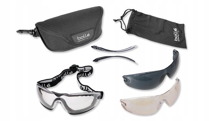 Okulary ochronne taktyczne Bolle Cobra Kit ZESTAW - Zestaw profesjonalnych okularów ochronnych z trzema wizjerami, zausznikami, pokrowcem. Zostały zaprojektowane tak, by zapewnić użytkownikowi maksymalny komfort, doskonałe dopasowanie i ostrość widzenia oraz gwarantować stałą ochronę. Okulary te, z wykonanymi ze wzmacnianego poliwęglanu soczewkami stosowane są w sportach rowerowych, strzeleckich a także w służbie policji i wojska. Doskonale sprawdzają się także jako ochrona oczu podczas gier ASG.