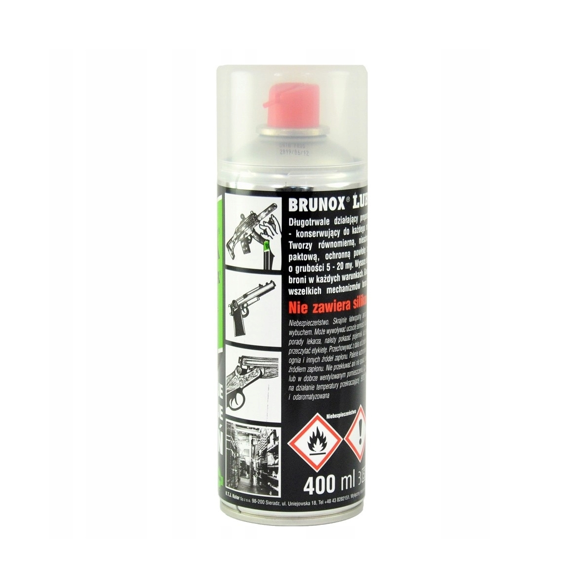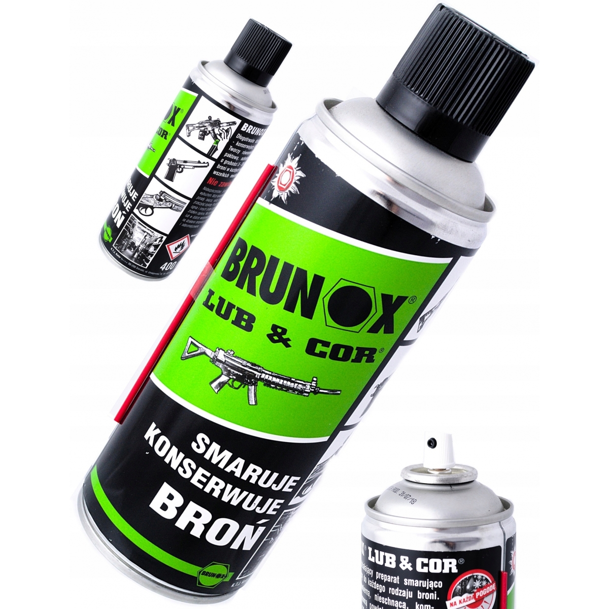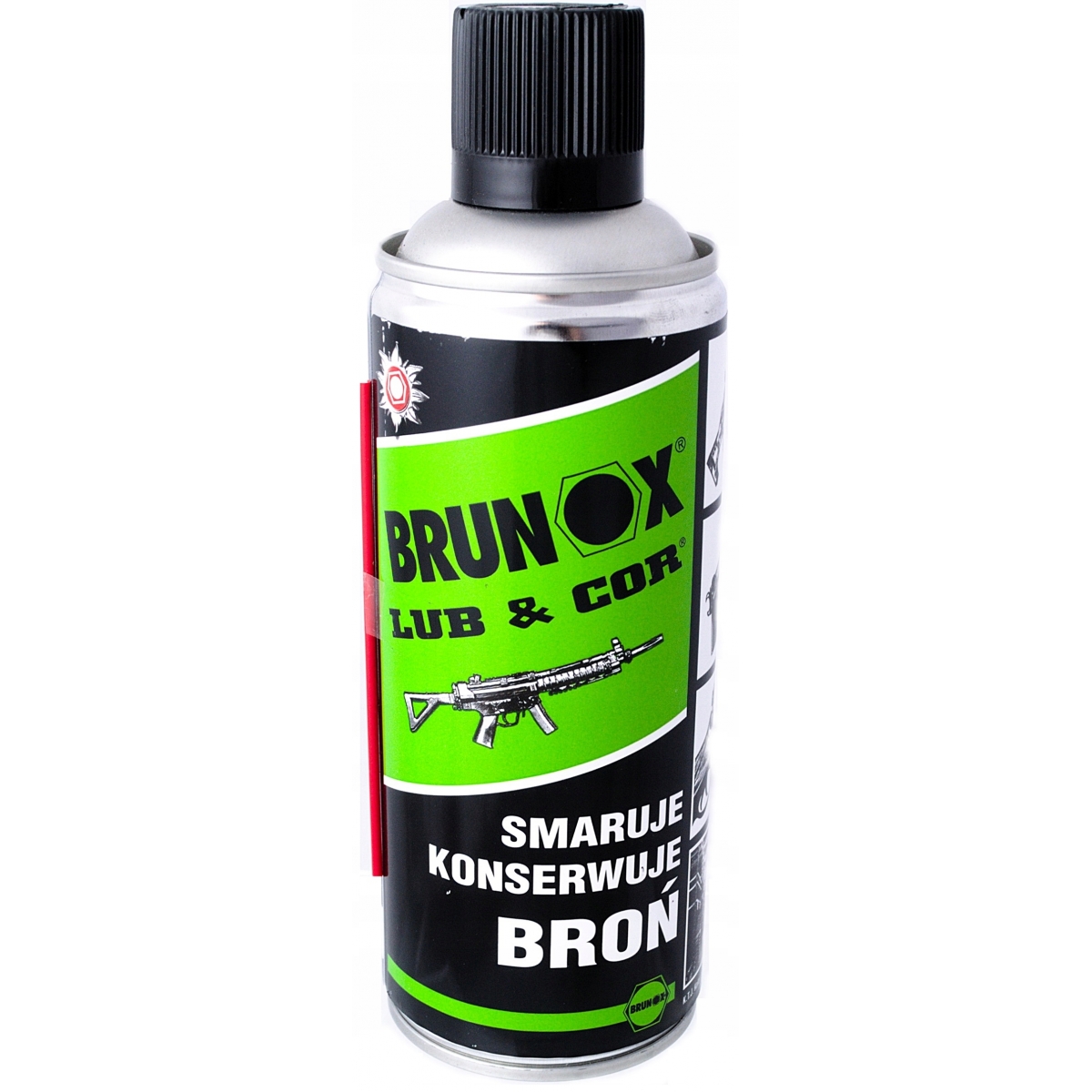 Brunox LUB & COR Spray to najlepszy długoterminowy inhibitor korozji oraz środek smarny do broni w jednym. Szwajcarski preparat w płynie przeznaczony do profesjonalnych zastosowań, użytkowany przez służby mundurowe. Wykorzystywany jest w myślistwie oraz w sportach strzeleckich z użyciem z broni palnej ostrej, czarnoprochowej oraz pneumatycznej (wiatrówek).