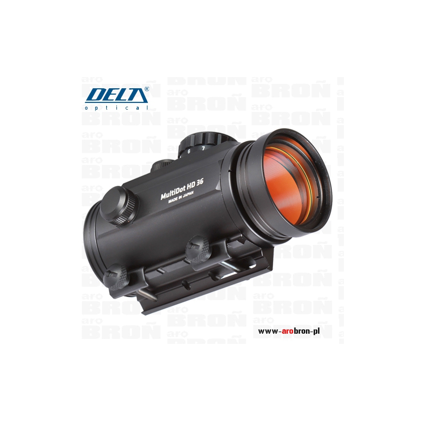 Celownik kolimatorowy Delta Optical MultiDot HD 36 to kolimator, w którym użytkownik sam decyduje o wielkości kropki. Kolimator posiada zamkniętą konstrukcję oraz posiada 4 wielkości punktu: 2, 4, 6 lub 8 MOA. Dodatkowo każdy z punktów posiada 11 stopniową regulację natężenia światła. Nowoczesna, wytrzymała konstrukcja zapewnia precyzję strzału na polowaniach zbiorowych przy odległości do 50 m. W komplecie znajdziemy również montaż weaver. Zasilany jest jedną baterią CR2032. Wyprodukowano w Japonii.